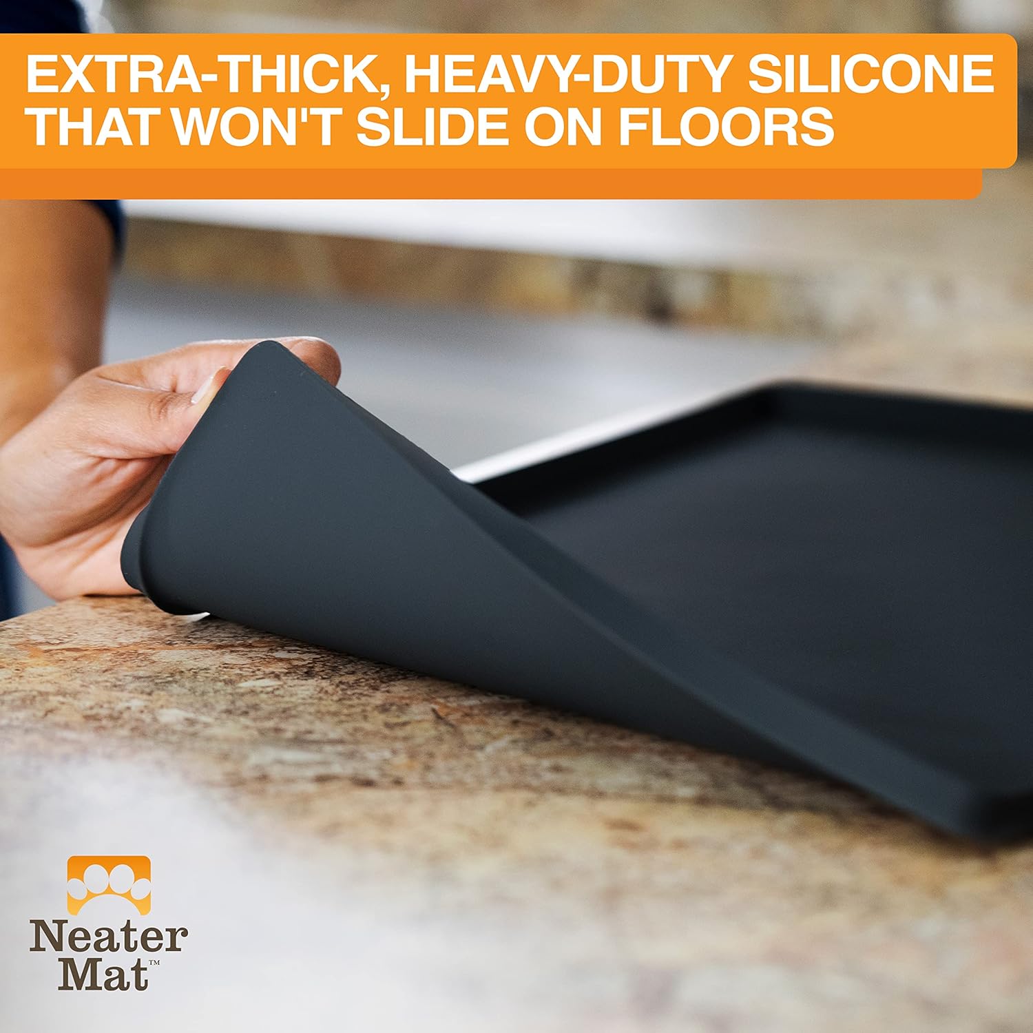 Neater Pet Brands Neater Mat Pet Mats for Food and Water, Cat & Dog Bowl Mat Waterproof Silicone, Feeding Tray, Dog Food Mats for Floors, Placemat w/Raised Edge for Under Bowls, 16” x 10”, Black
