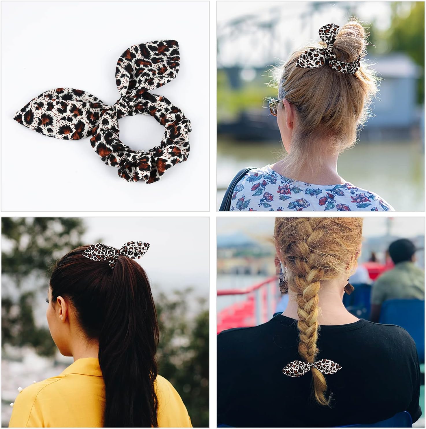 - Matching Bandana and Scrunchie Set- It’s full of love when your pets is wearing the animal print dog scarf and you are wearing the headband. When traveling, sleeping, taking photos or daily walking, adorable cheetah print dog bandana and scrunchie is a pretty daily accessories. The scrunchie can be worn as a wrist accessory, and as a hairband to hold your hair. Beautiful bohemian dog bandana matching human scrunchies with brown, black and beige print pattern, it’s nice photo props.