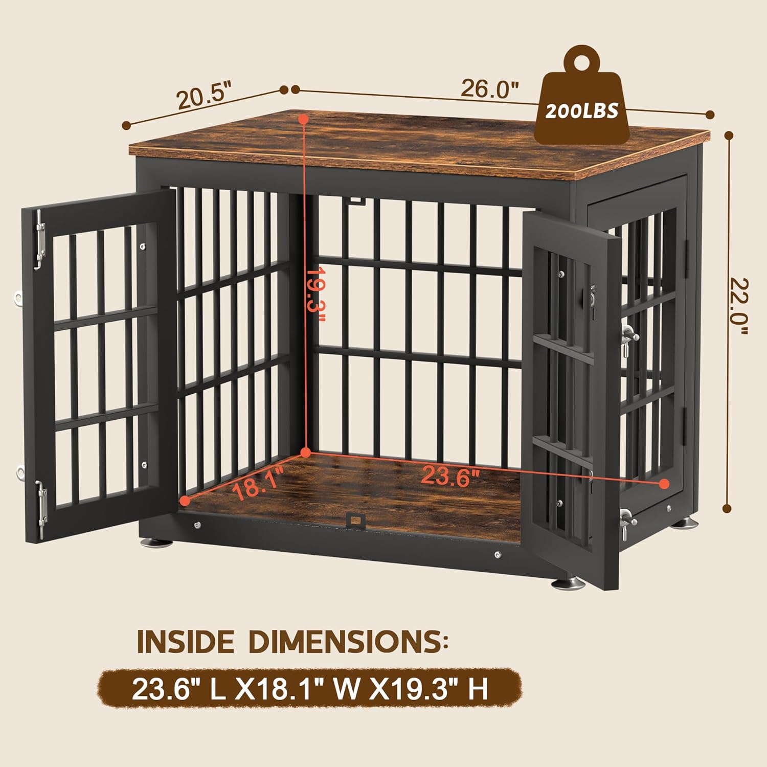 26 Inch Heavy Duty Dog Crate Furniture for Small Dogs, Decorative Pet House End Table, Wooden Cage Kennel Furniture Indoor, Rustic Brown