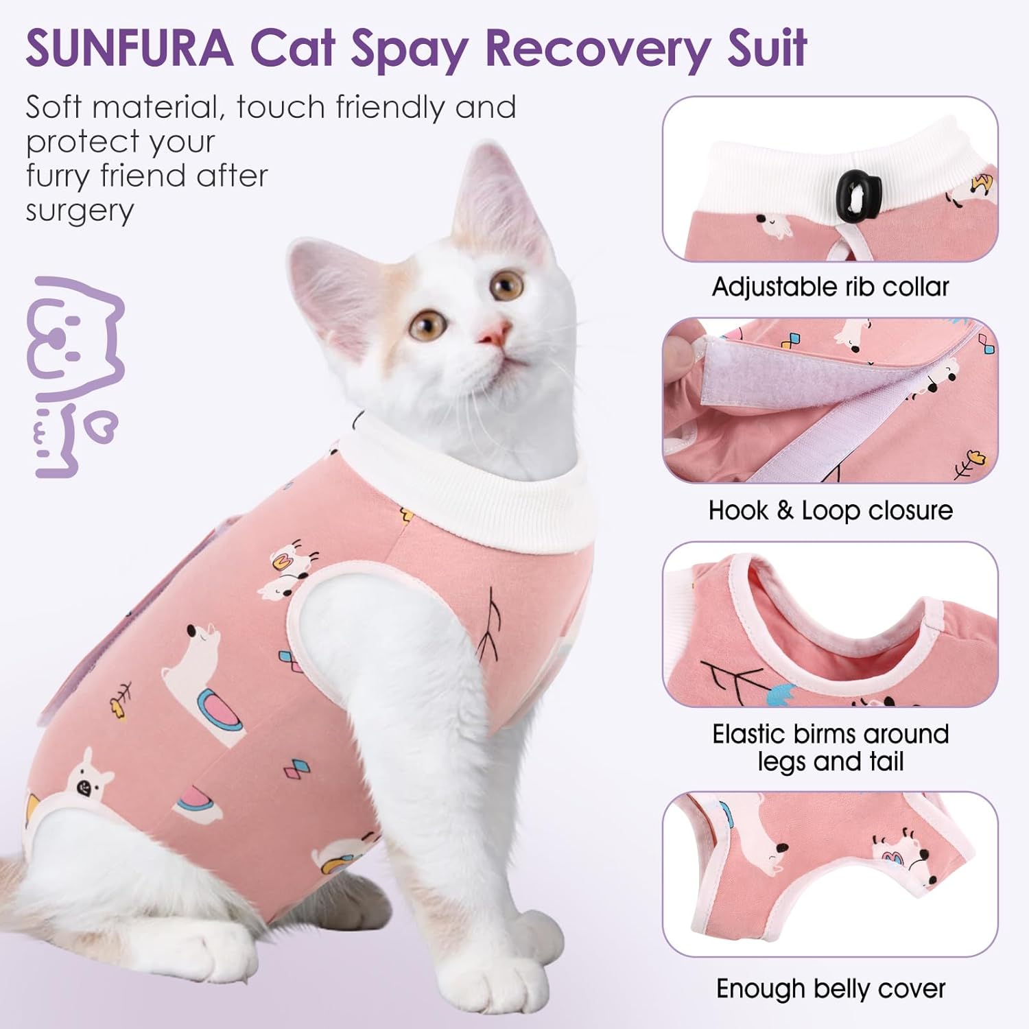 - Breathable & Soft Fabric: SUNFURA Cat Recovery Suit After Surgery for Female/Male is soft, comfortable, skin-friendly and will not irritate the wound. The surgical suit can protect its skin and keep it warm after the cat has shaved