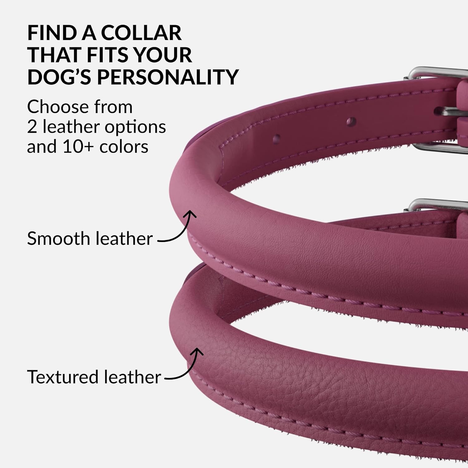 CollarDirect Rolled Leather Dog Collar, Soft Padded Round Puppy Collar, Handmade Genuine Leather Collar Dog Small Large Cat Collars 13 Colors (6-7 Inch, Pink Smooth)