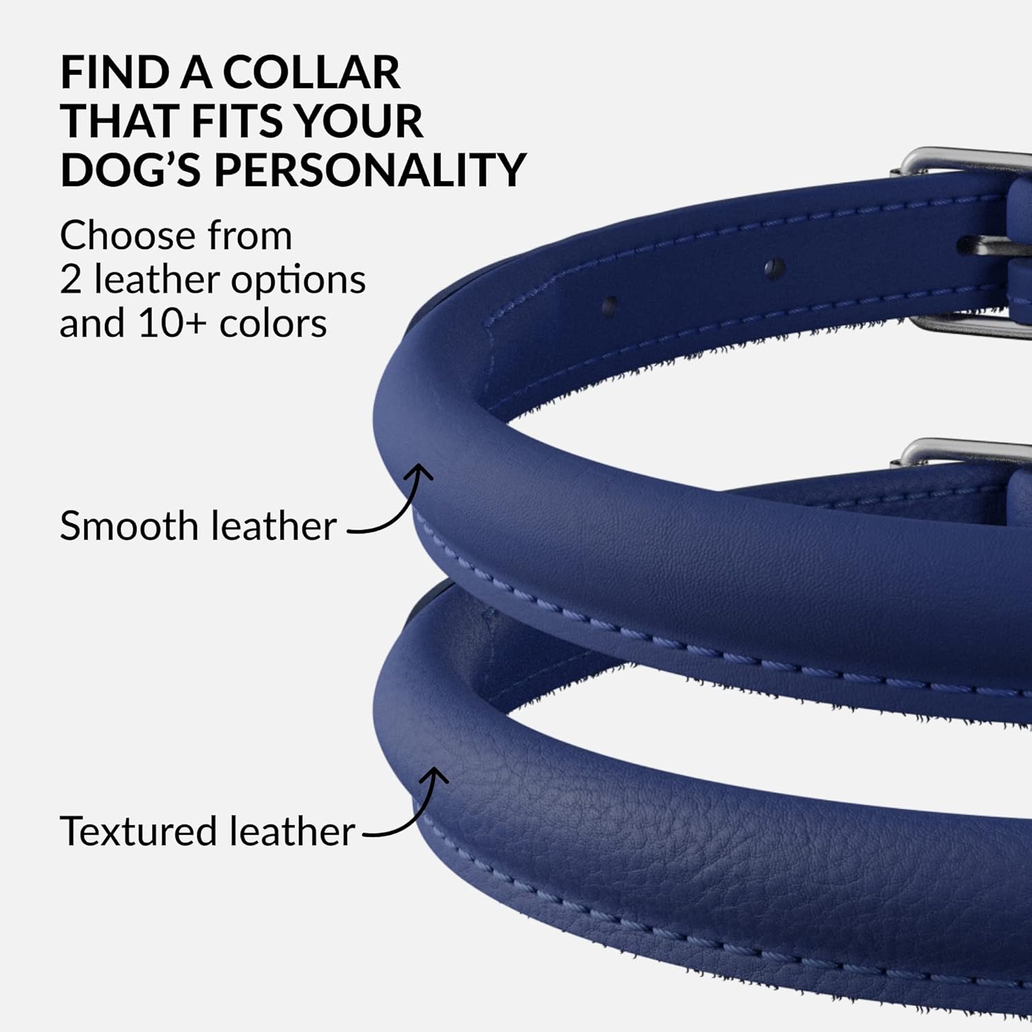 CollarDirect Rolled Leather Dog Collar, Soft Padded Round Puppy Collar, Handmade Genuine Leather Collar Dog Small Large Cat Collars 13 Colors (15-19 Inch, Deep Blue Smooth)