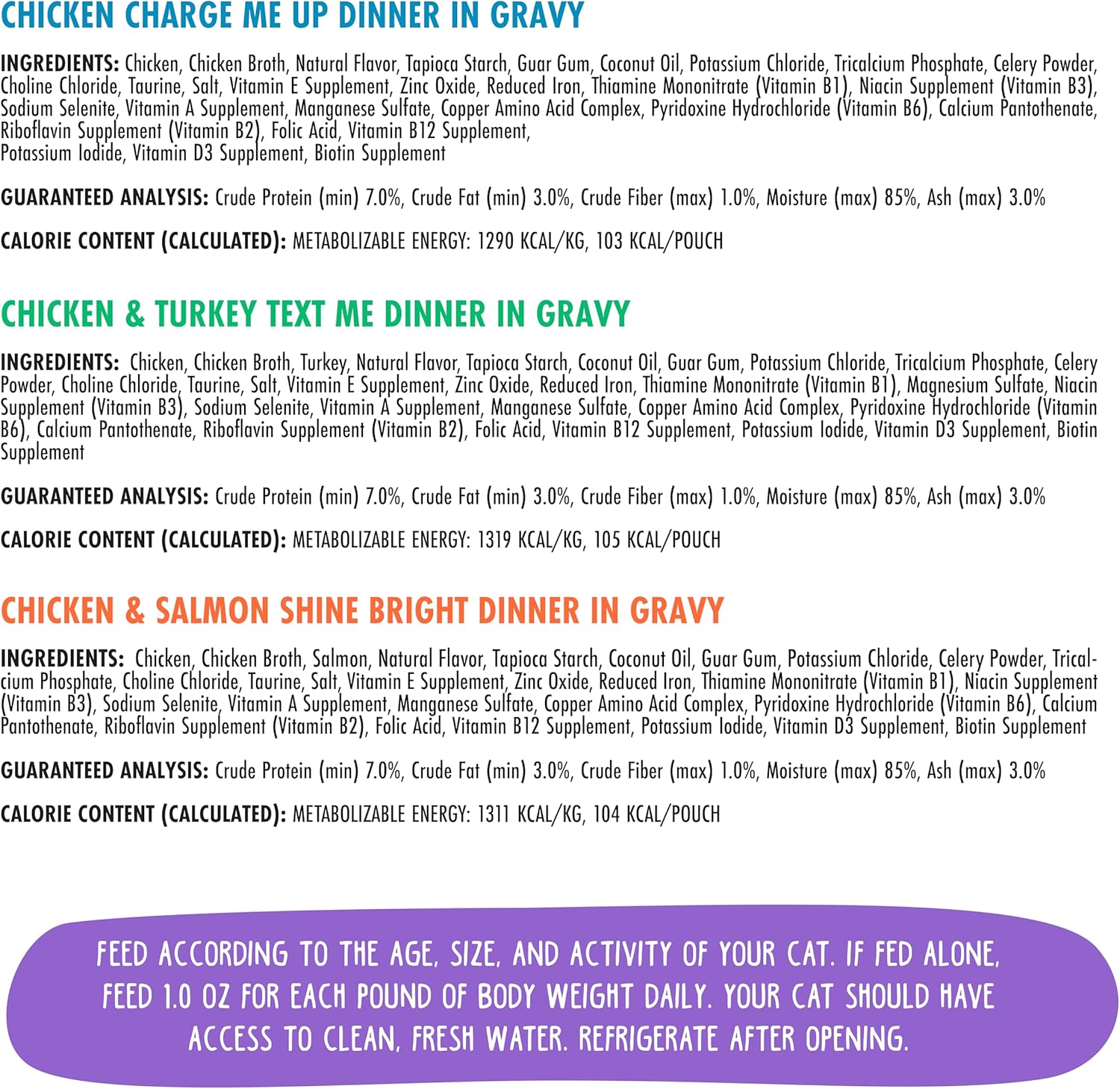 - Yippy Ki Yay Yellows! Variety Pack, 2.8oz Pouch (Pack of 12) A selection of three all natural wet cat food recipes, featuring cage-free chicken in a delicious gravy cats can’t resist!