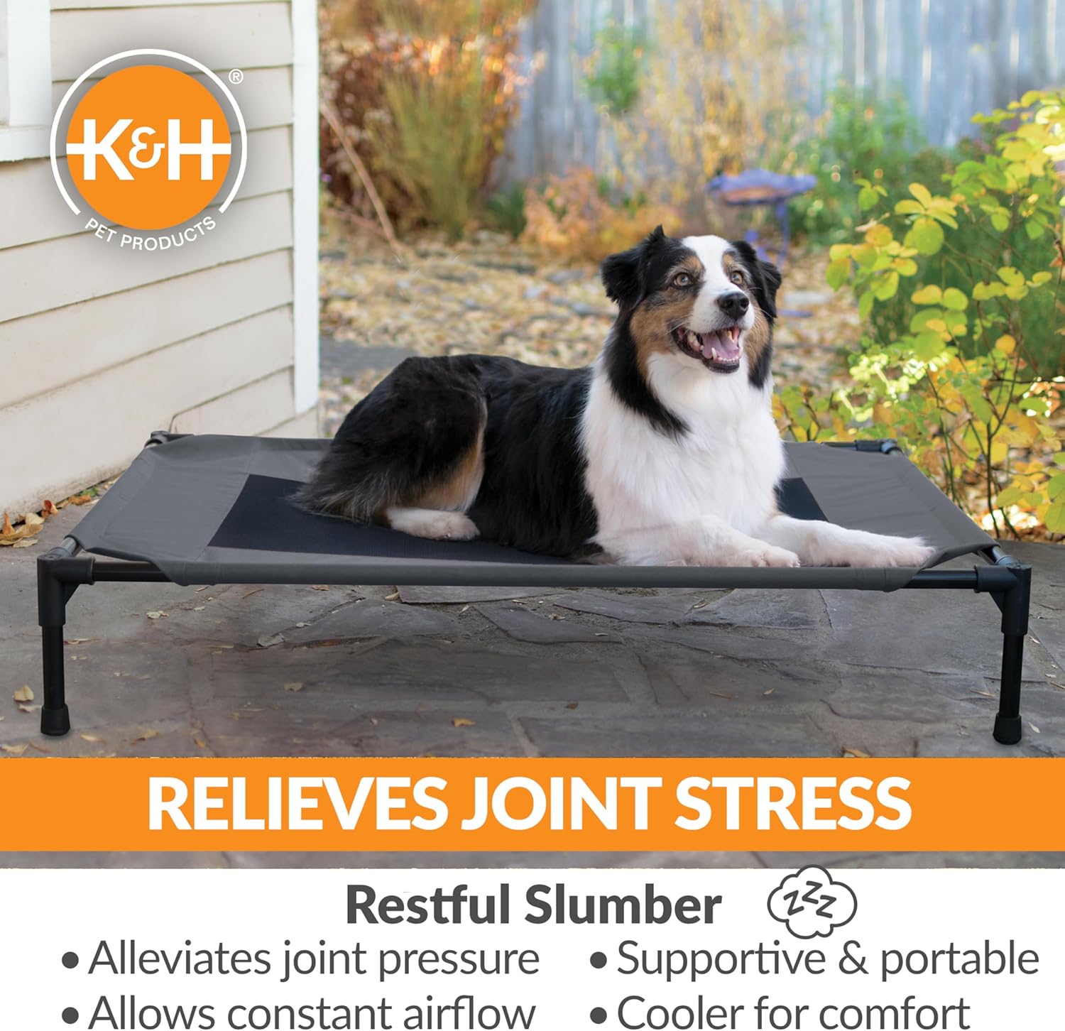 K&H Pet Products Outdoor Elevated Dog Cot, Breathable Cooling Elevated Cot Hammock Pet Bed for Large Dogs, Washable Mesh Cover, Raised Metal Frame, Collapsible, Portable - Large 42 X 30in Charcoal