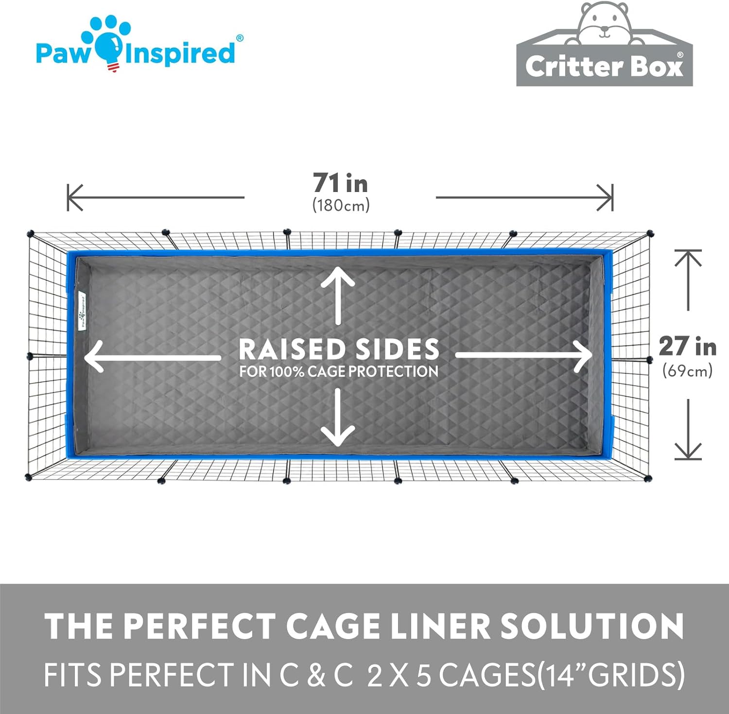 Paw Inspired Critter Box | Washable Guinea Pig Cage Liners with Raised Sides | Fleece Bedding for Guinea Pigs Rabbits, Hamsters, Small Animals | Edge Protected Pee Pads (C&C 2x5 (14" Grids))