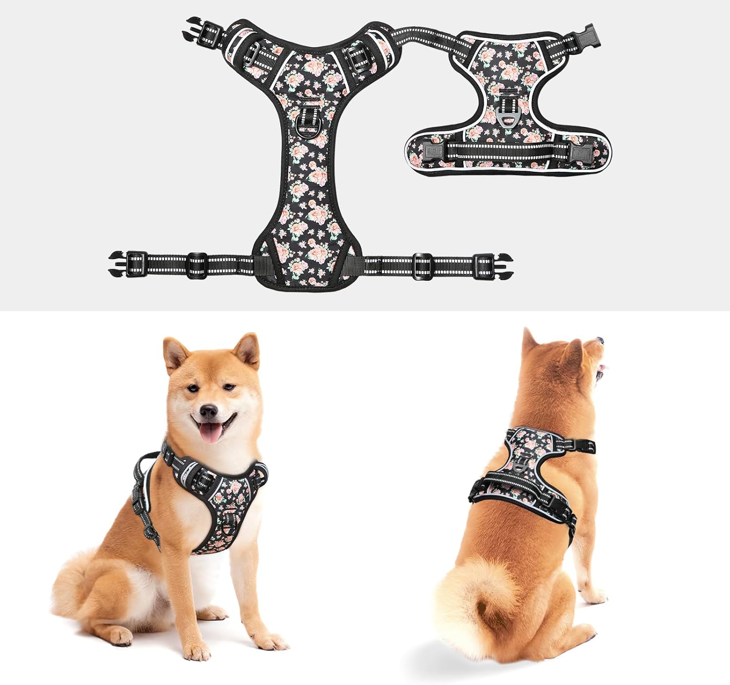 - 【4 WAYS ADJUSTABLE STRAPS】The fit of this pet harness can be completely customized for your pet using the slide adjusters at the chest and neck.You can use its 2 neck straps and 2 chest straps to create a Perfect Fit for your dog with some room of growth. No worries about slipping out or choking.