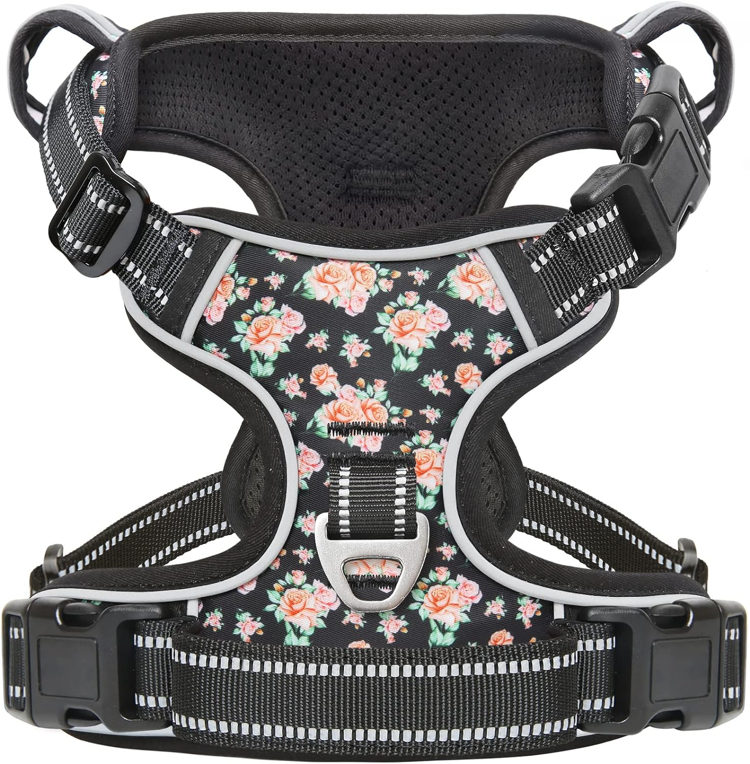 - 【4 WAYS ADJUSTABLE STRAPS】The fit of this pet harness can be completely customized for your pet using the slide adjusters at the chest and neck.You can use its 2 neck straps and 2 chest straps to create a Perfect Fit for your dog with some room of growth. No worries about slipping out or choking.