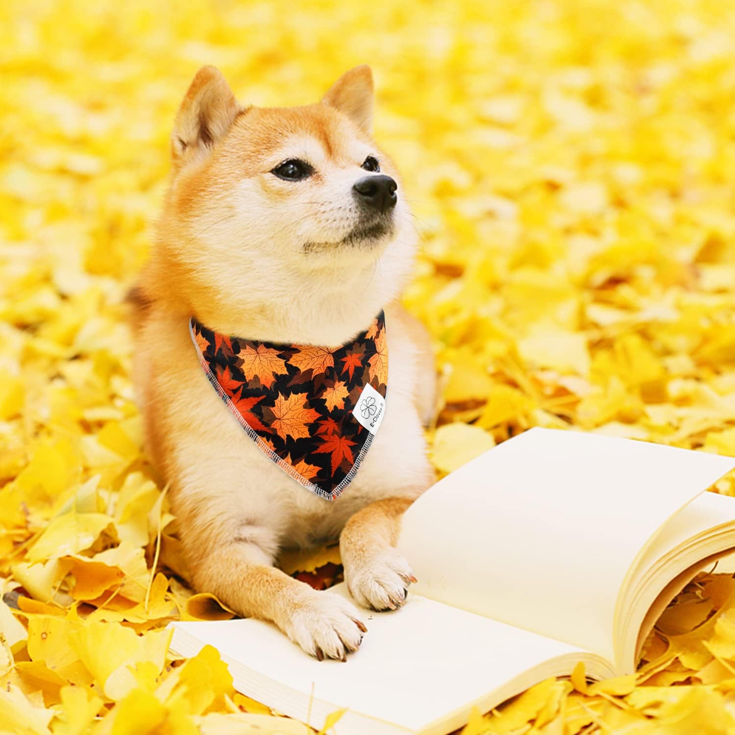 E-Clover Fall Dog Bandana & Scrunchie Set - Thanksgiving Pet Scarf Kerchief Bibs for Medium Large Dogs - Maple Leaves