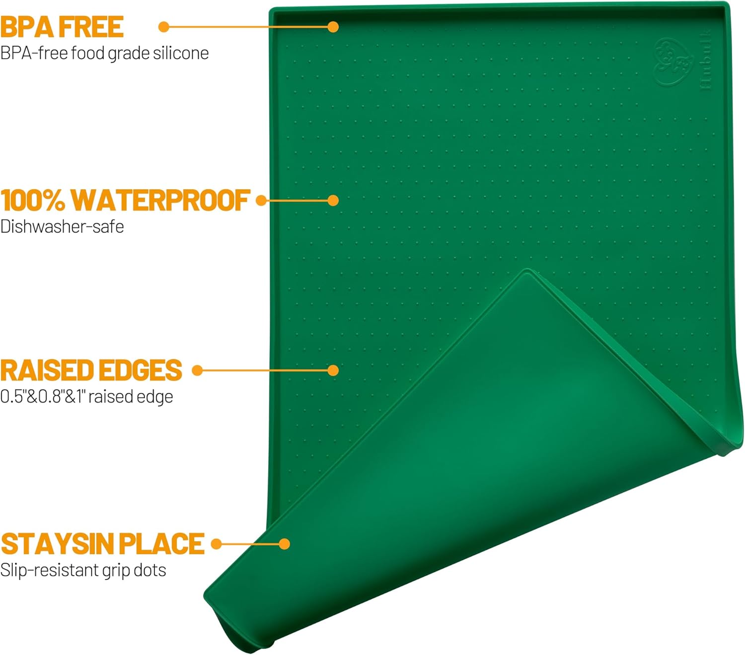 Hubulk Dog Feeding Mat,100% Waterproof Food Grade Silicone Pet Food and Water Bowl Placemat,Dishwasher, High Raised Edge to Prevent Spills,Nonslip Tray to Stop Messes on Floor(32"x24"x1.0",Hunter)