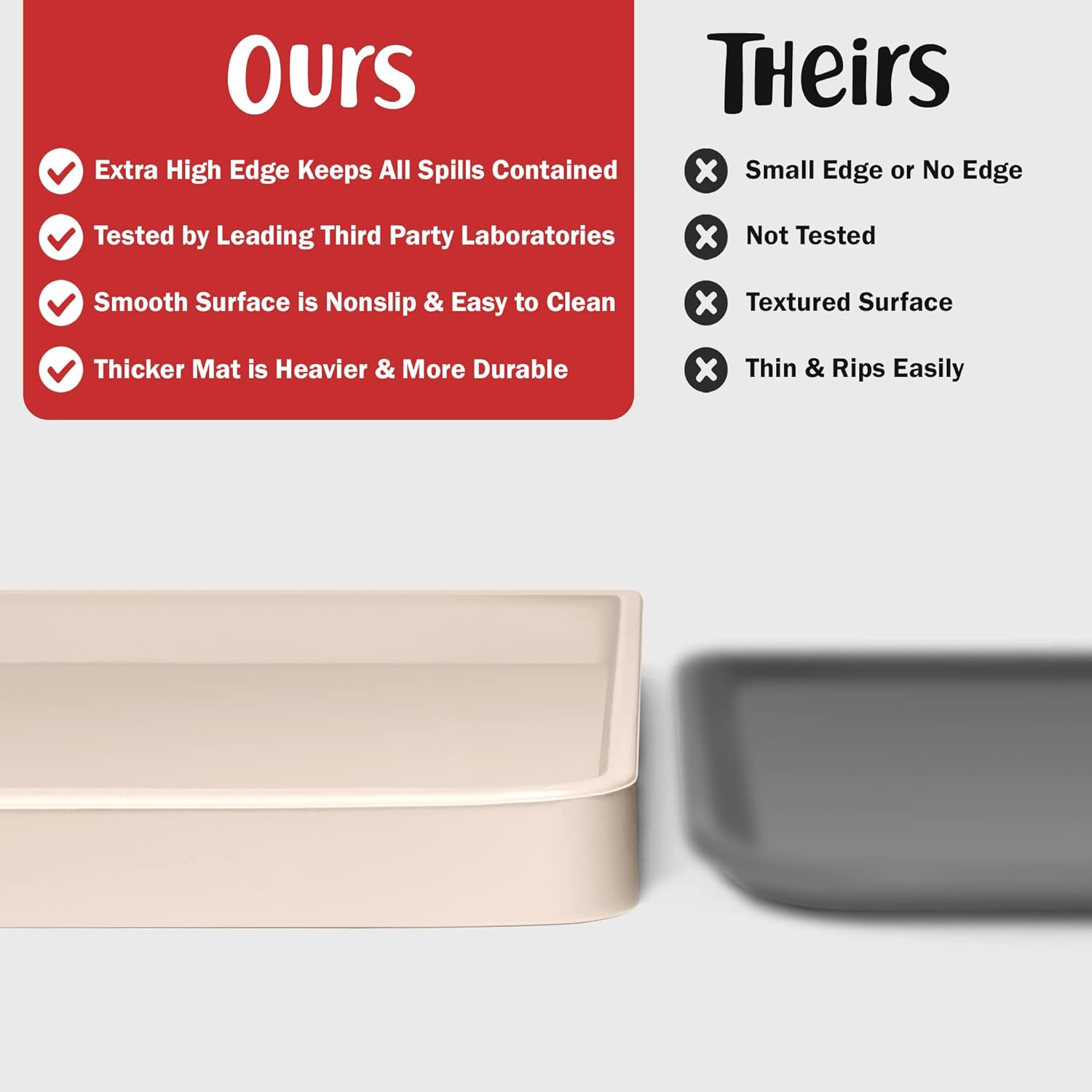 - Less Mess & Less Stress: Super high edge (0.6”) of DogBuddy Dog Food Mat keeps the spilled food and water on the mat and away from your beautiful floor. Silicone is naturally 100% waterproof, so what happens on the mat stays on the mat.