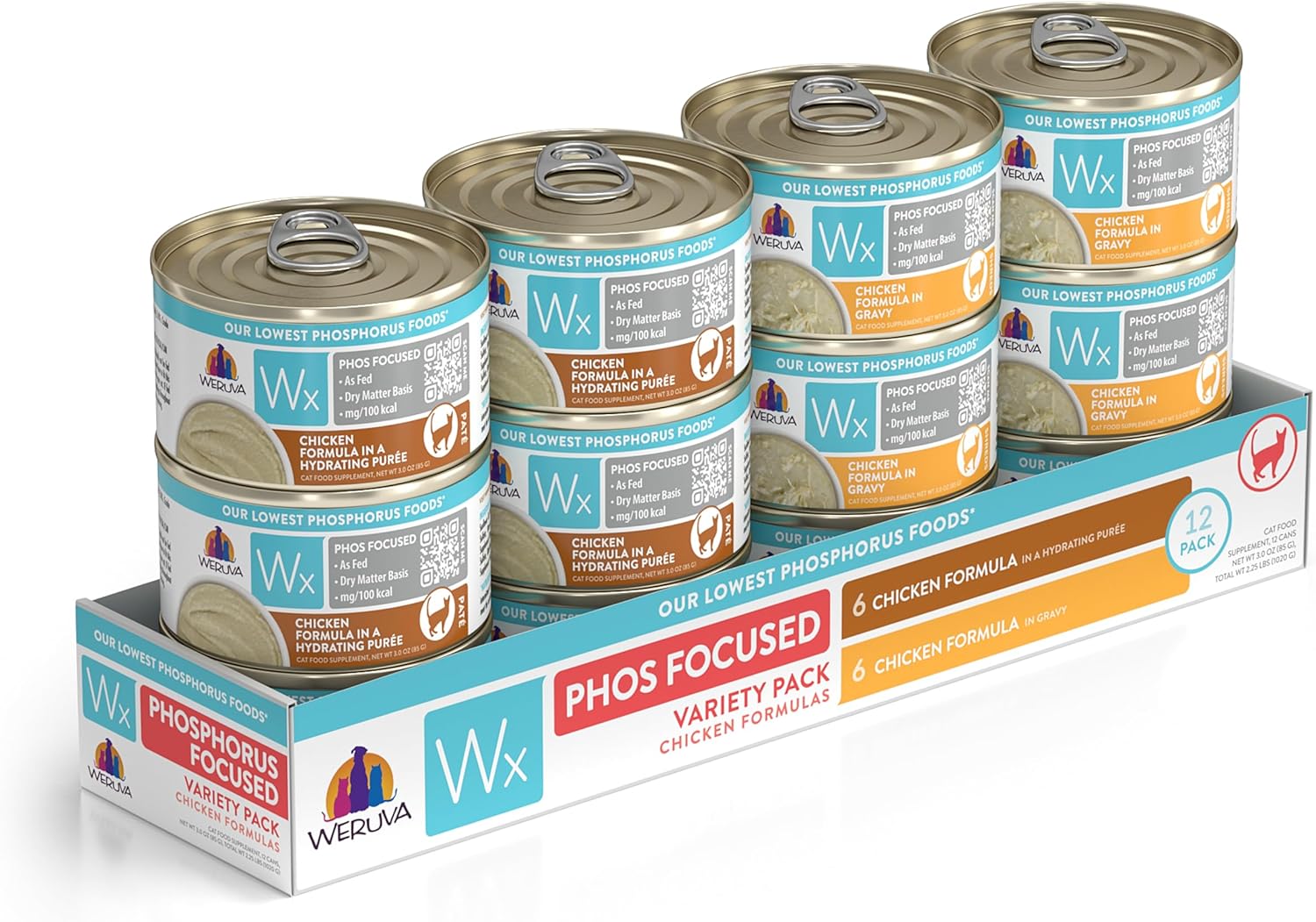 - Wx Phos Focused, Chicken Formulas Variety Pack, 3oz Can (Pack of 12)