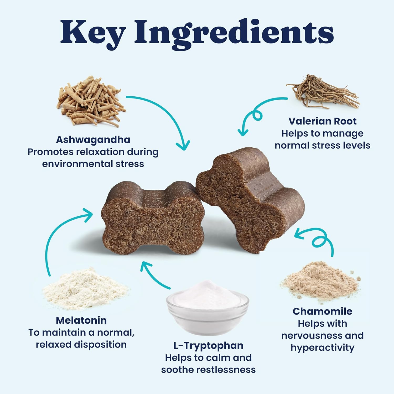 - Herbal Calming for Dogs – Made with melatonin, Chamomile & Valerian Root, these calming dog chews promote tranquil behavior & composure. Trusted calming chews for puppies, calming chews for small dogs, medium dogs, & calming chews for large dogs