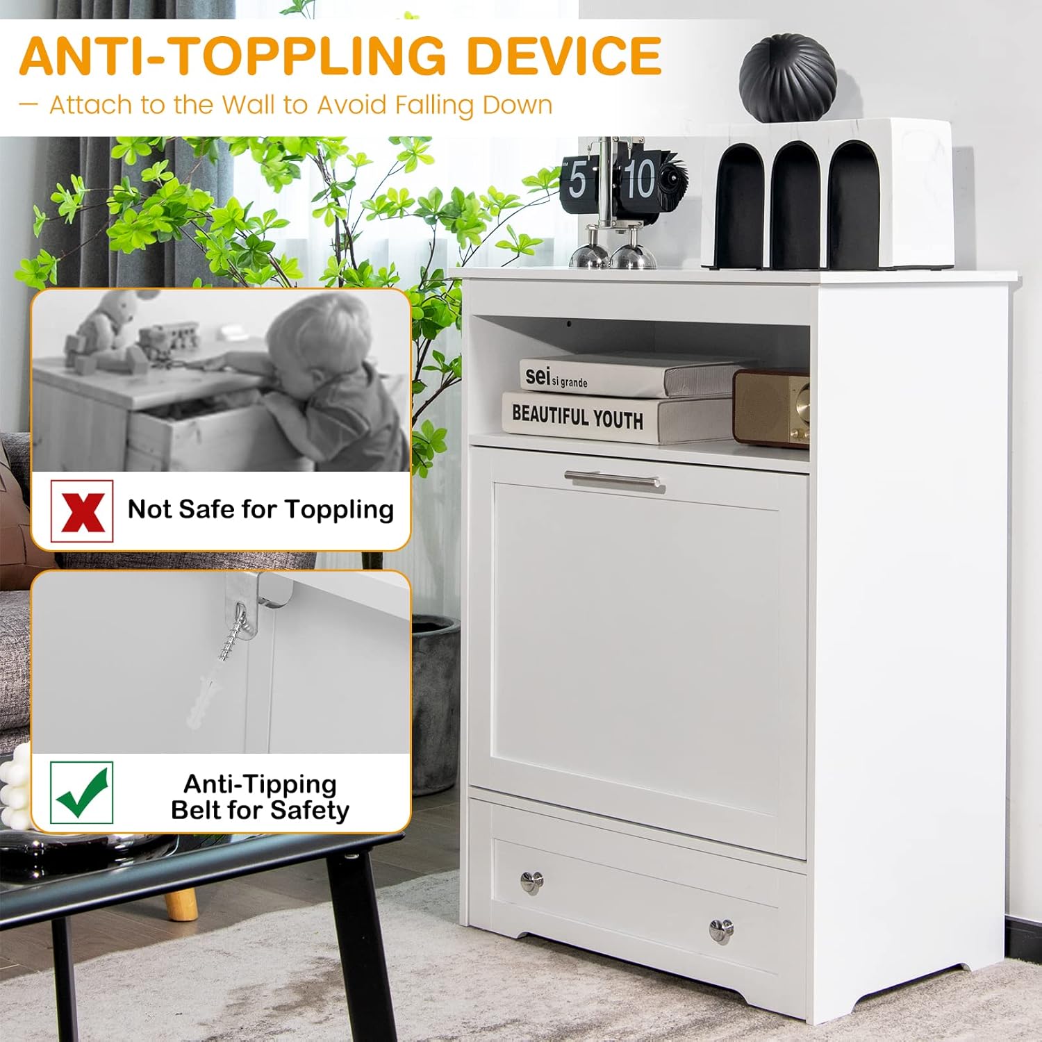 - 【Safe Material & Anti-toppling Devices:】The dog food storage container is made of premium MDF board. 2 dog food bowls are made of food-grade stainless steel for your pet’s safe and healthy eating. Moreover, the anti-toppling devices are included to fix the table to the wall to improve stability and safety.
