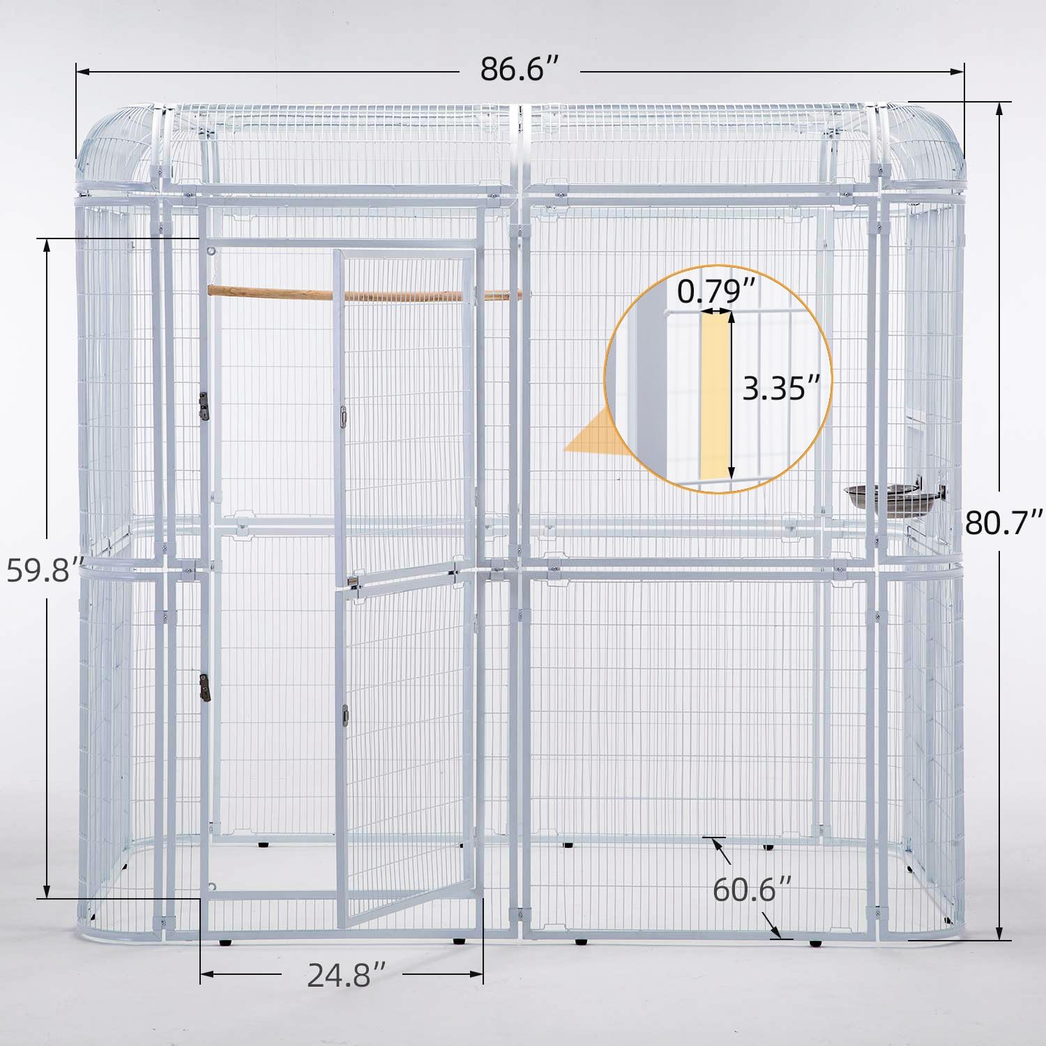 - Need to Assemble - The cage comes with three separate packages. Overall Size: 86.5โL x 60.5โW x 80.39โH;Door size: 59.8"H X 24.8"W