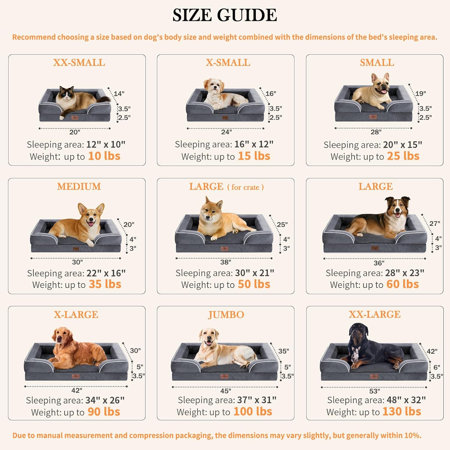 Comfort Expression Waterproof Large Dog Beds Orthopedic Foam Dog Beds Sofa Comfy Pet Bed with Washable Removable Cover & Non-Slip Bottom(Large,Dark Grey)