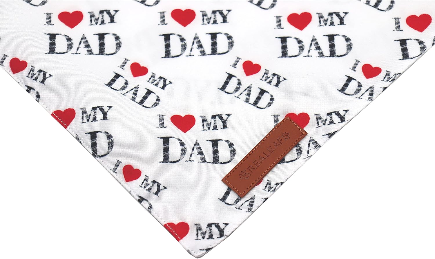 Realeaf Fathers Day Dog Bandanas 2 Pack, Reversible I Love My Dad Pet Scarf for Boy and Girl, Premium Durable Fabric, Bandana for Small Medium Large and Extra Large Dogs (Large)