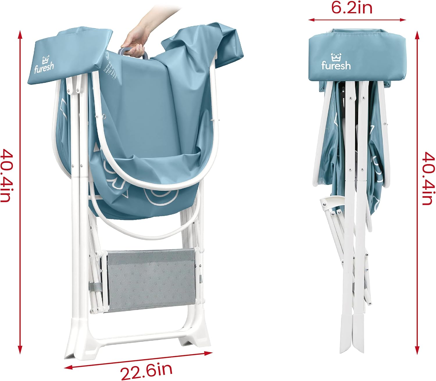- ăFOLD IN SECONDSăThanks to lightweight construction and patented folding mechanism, the tub can fold and deploy with one hand in seconds.All patents and copyright reserved. Pull the handle in the middle to fold it from 46.1" to 6.2" wide for easy storage. The tub's legs and stairs are removable to save more space in storage and transit