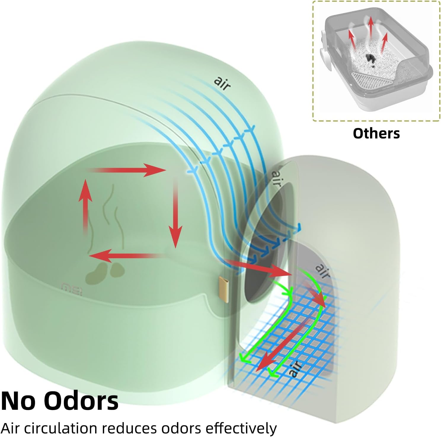 - Closed Design: Closed cat litter box with lid design. After the cat excretes, it is firmly locked in the litter box, effectively avoiding the odor and dust, so that the environment around the cat litter box is always clean and fresh. Even in corners with poor ventilation, it reduces the trouble of odor and creates a comfortable and pleasant living environment for you