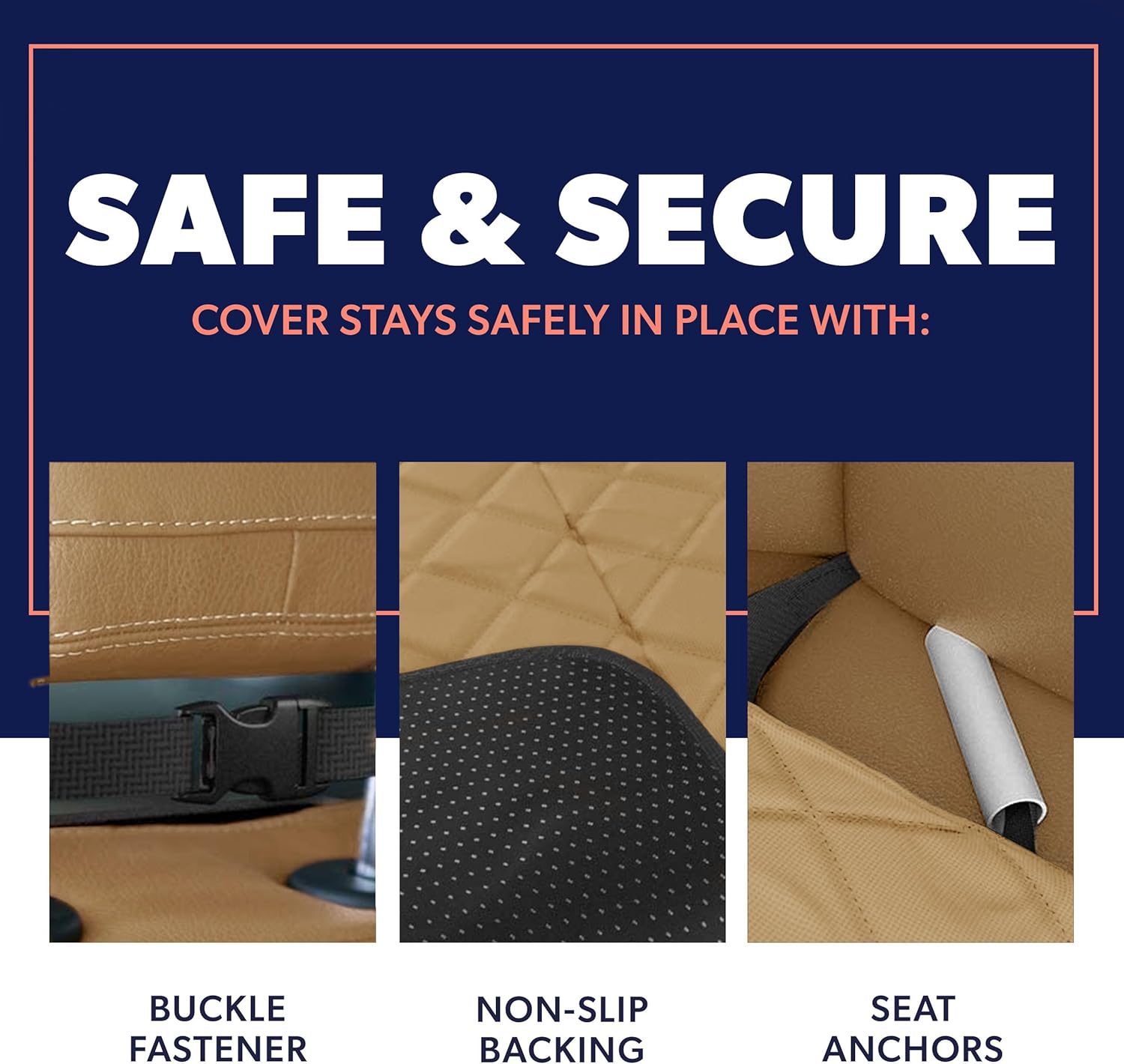 - SAFETY FIRST! - Active Pets uses 4 levels of security protection to keep your pet safe! This amazing front car seat cover for dogs defines a whole new level of safety: one heavy-duty buckle for the headrest, and one for the backrest to make sure your dog front car seat cover is always secured in its place, and a seat anchor and non-slip bottom to ensure that your pet will never slide around!