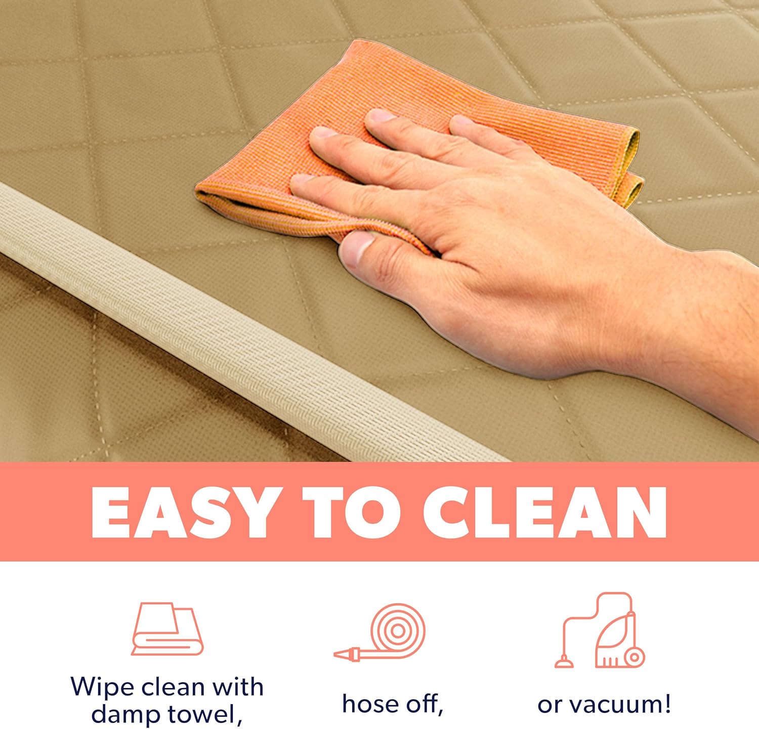 - EASY-TO-CLEAN MATERIALS â Active Pets dog front seat cover is made exclusively from super easy to clean materials! Crafted with a top layer of premium 600D Oxford waterproof cotton and a middle layer of Oxford 210D with waterproof coating, your seats will remain clean no matter what. In case your pet has dirtied the seat cover, just wipe with a damp cloth or vacuum it and it will be new again in a minute!