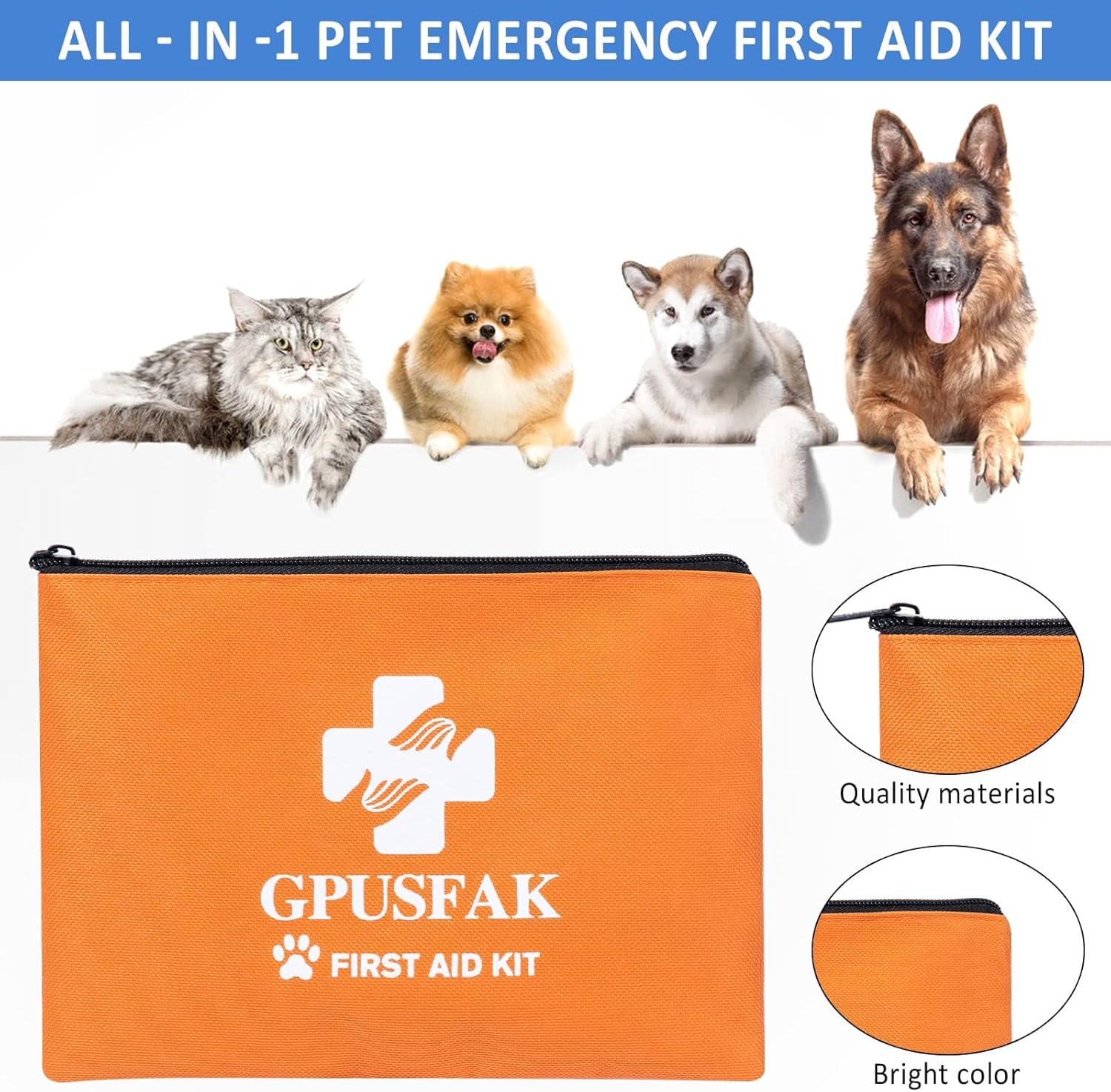 - A MUST-HAVE FIRST AID KIT FOR PETS: Do you have an active pet such as dog or cat? Then you definitely need this pet first aid kit.It contains FIRST AID SUPPLIES including gloves, bandages, medical tape, tweezers, scissors... and USUAL CARE SUPPLIES like pet care kit, tongue depressors and plastic clips, etc