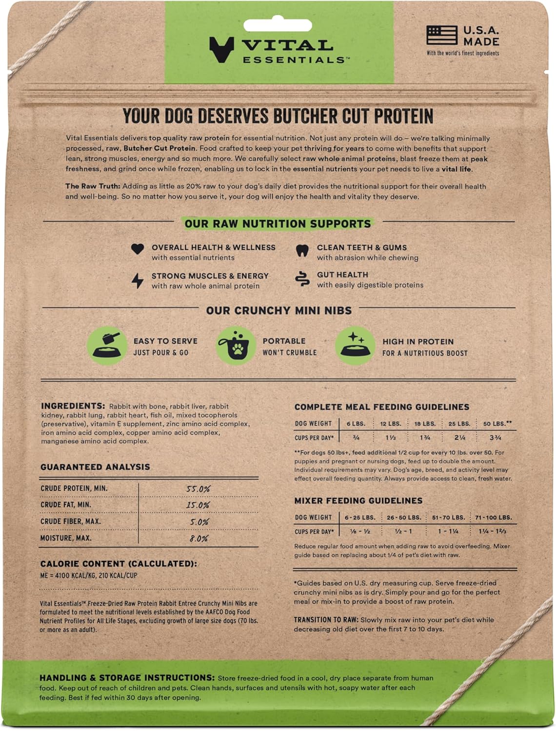Vital Essentials Freeze-Dried Raw Rabbit Meal or Mixer Dog Food Crunchy Mini Nibs, 25 oz