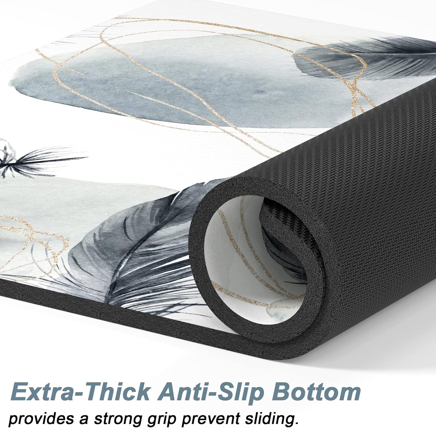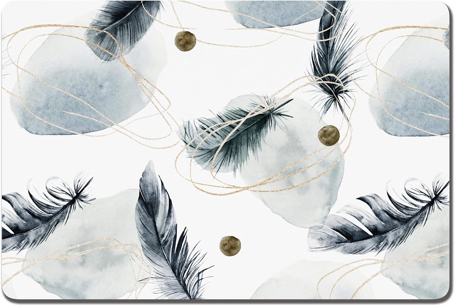 Rnivvi Dog Food Mat, 12" x 19" Absorbent Dog Cat Bowl Mat for Food and Water, Cute Anti-Slip Rubber Pet Feeding Rug Protect Floors, Puppy Placemat for Feeding & Watering Supplies, Abstract Plume