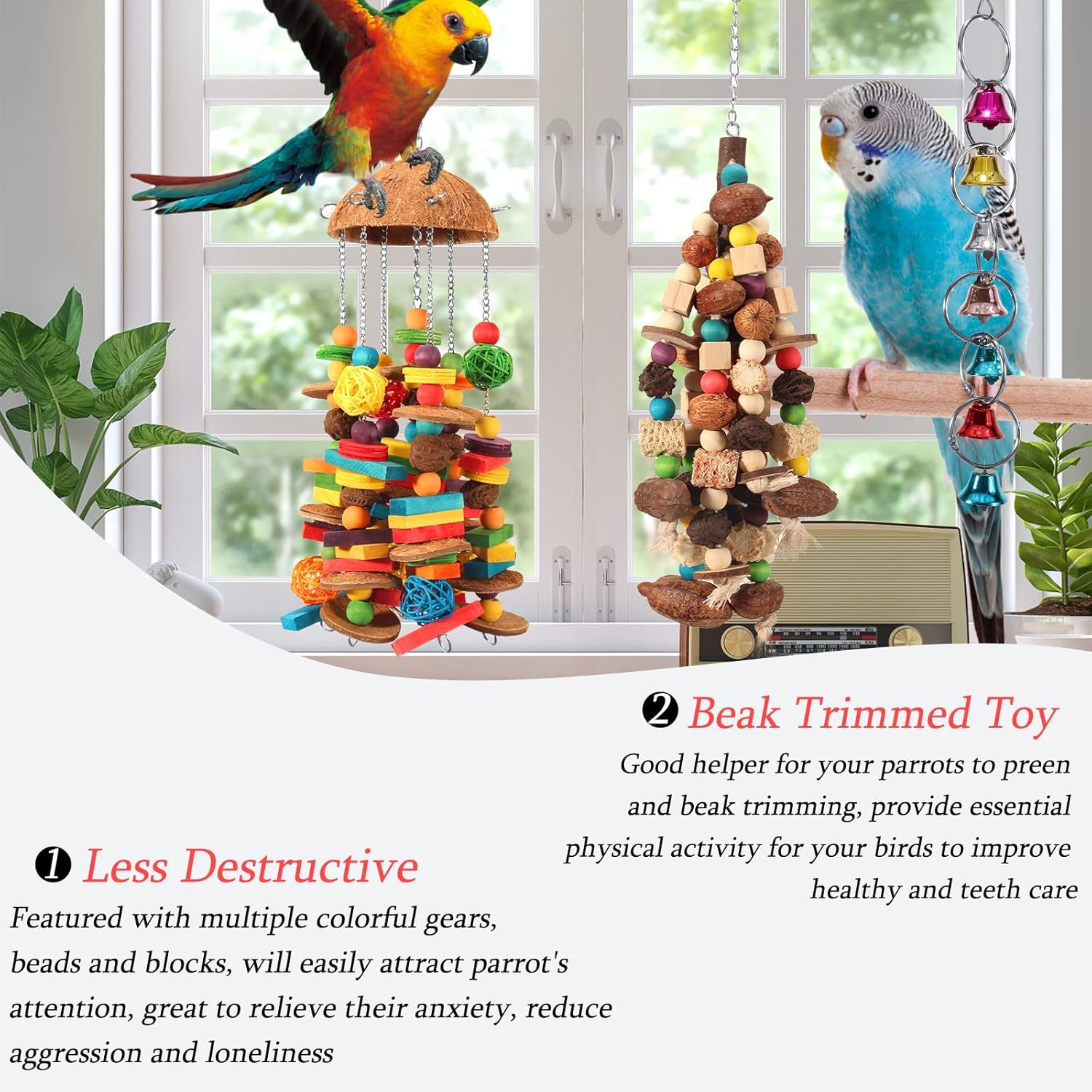 - Beak Trimmed Toy: Parrot foraging toy is a good helper for your parrots to preen and beak trimming, provide essential physical activity for your birds to improve healthy and teeth care, to keep them less destructive
