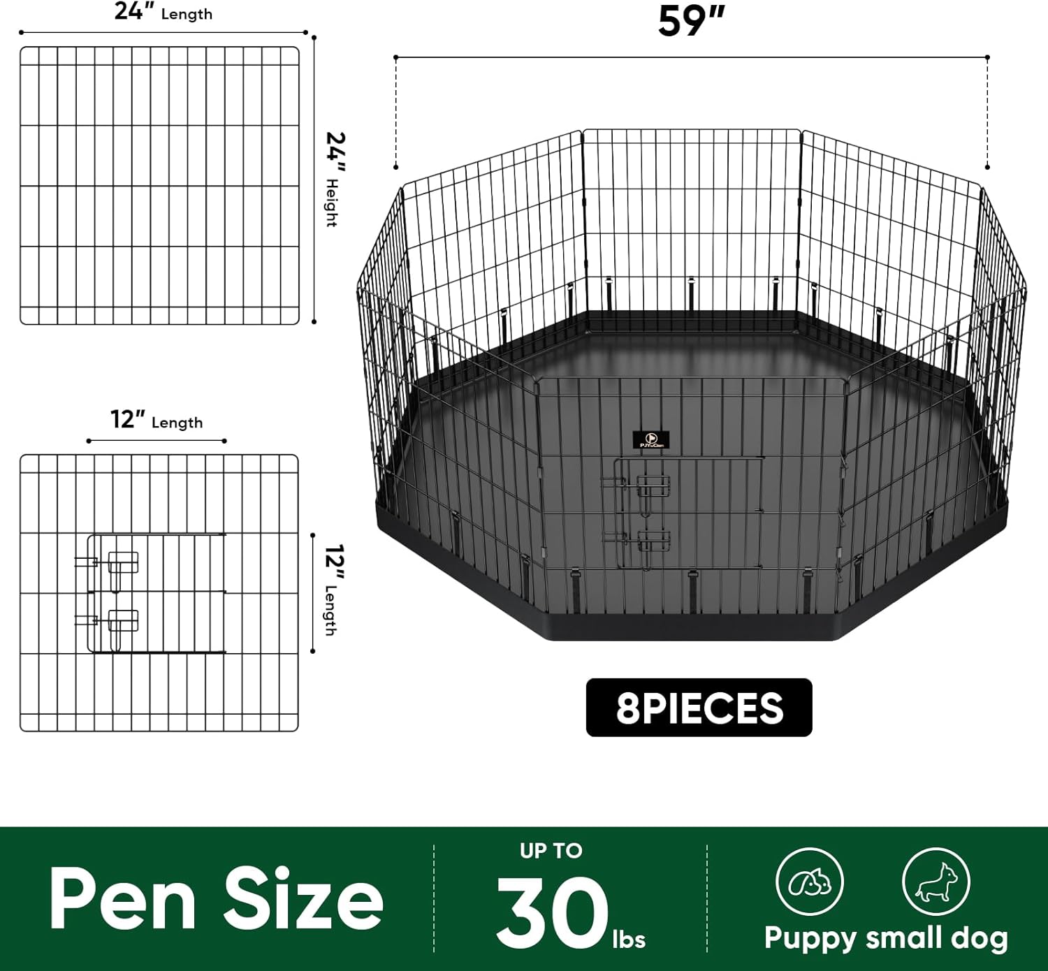 PJYuCien Dog Playpen, 8 Panels 24’’H Dog Pens Indoor with Bottom Pad, Metal Foldable Pet Puppy Exercise Fence Crate Kennel, Better for Small Animals, Black