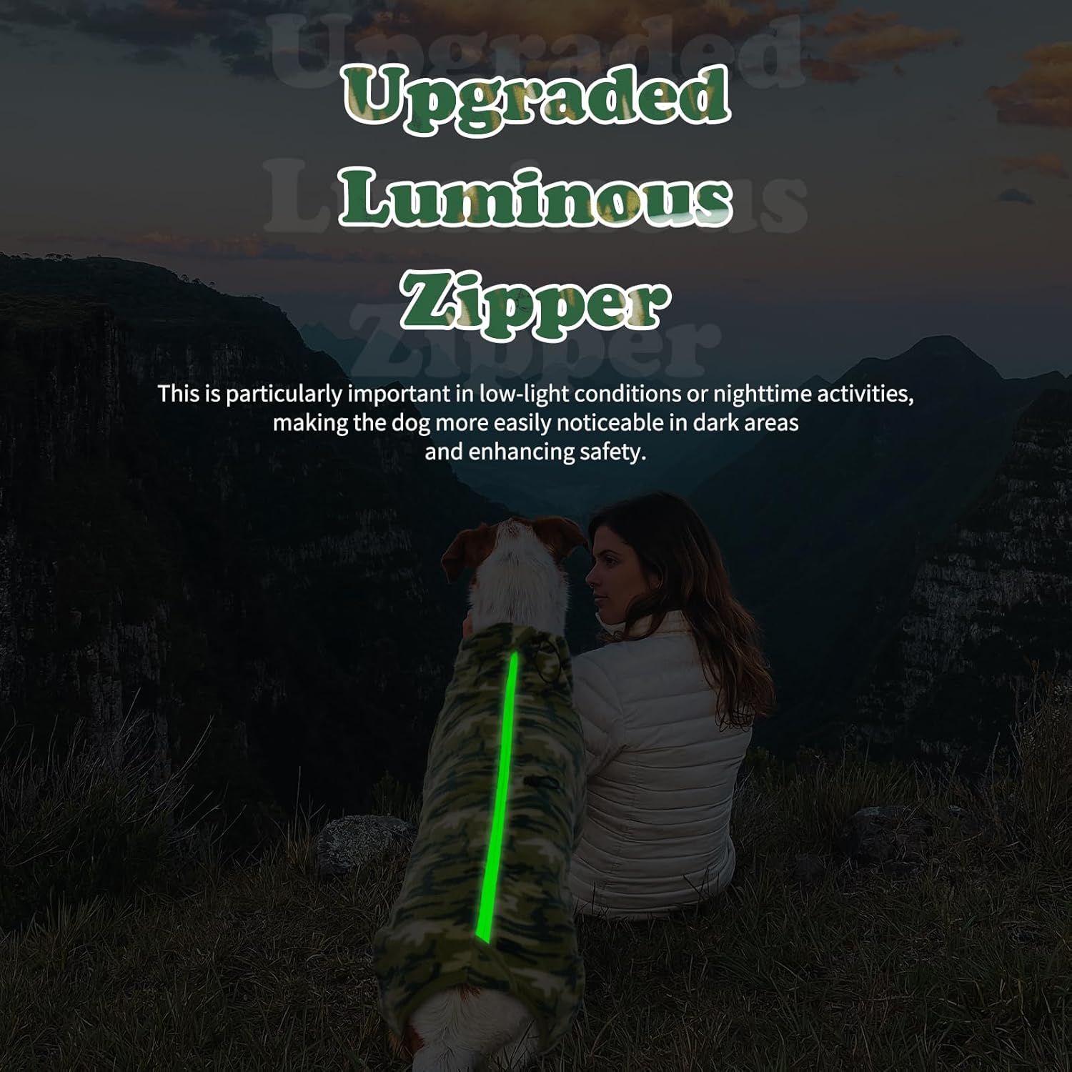 ROZKITCH Dog Long Sleeve Pajamas, Pet Windproof Warm Cold Weather Jacket Vest with Luminous Zipper, Jumpsuit Apparel Outfit Clothes for Small Medium Large Dog Camo 2XL