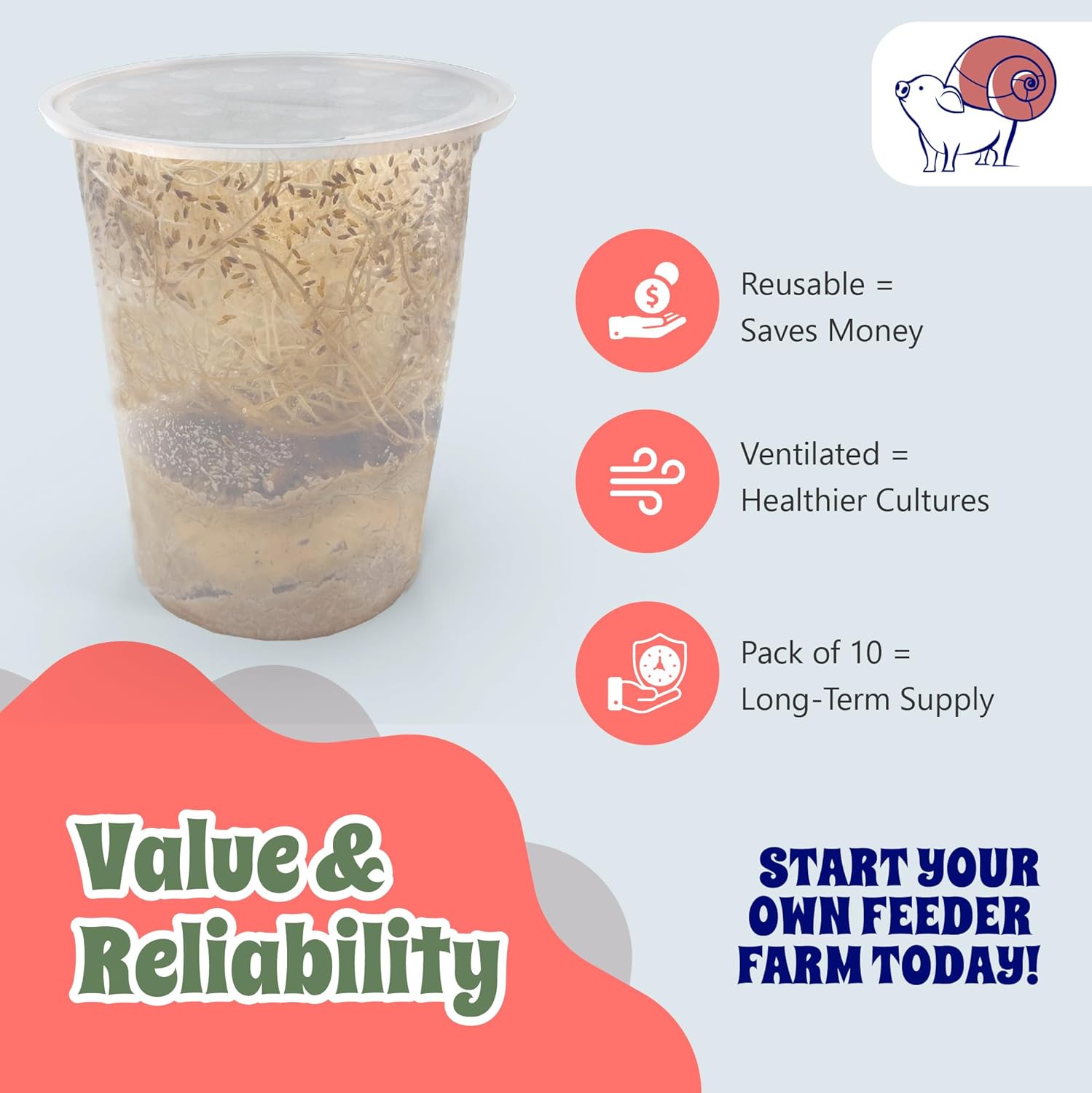 Snout and Shell Deli Cups with Fabric Vented Lids, 10 Pack - Secure Fruit Fly & Insect Cultures, Prevent Escapes & Contaminants, Easy Fruit Fly Media Preparation, Hot Liquid Safe