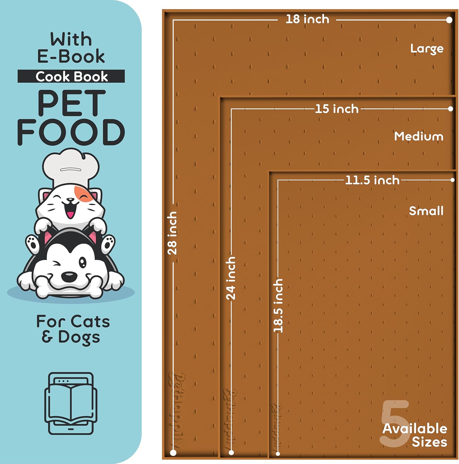 - GET BEST BANG FOR YOUR BUCKS; A (paperless) e-Book on Homemade Dog and Cat Food | Premium-Grade Silicone for Mat | Multiple Sizes available for All Types of Pets. | Elegant Colors to match your Décor | Thoughtfully Designed Updated Pattern | 0.22 inches Raised Edges and Water-Proof | Multifunctional Mat for Pet Food, Boot Tray, Under Sink Mat Use, Plant Mat