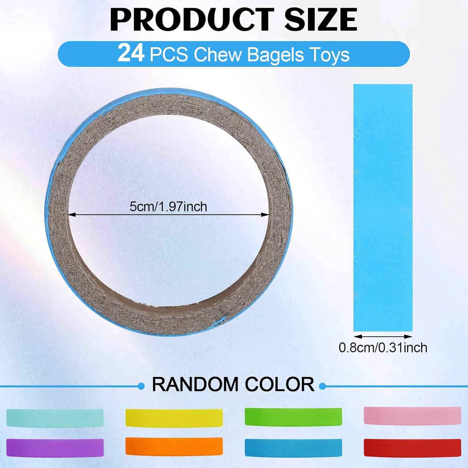 Jenaai 24 Pcs Chew Bagels Bird Toys for Parrots 2.4 Inch Wood Bird Chew Toys Colorful Cardboard Foraging Chew Foot Wooden Training Toy for Cockatiels Cockatoos Macaws and Similar Sized Pet Birds