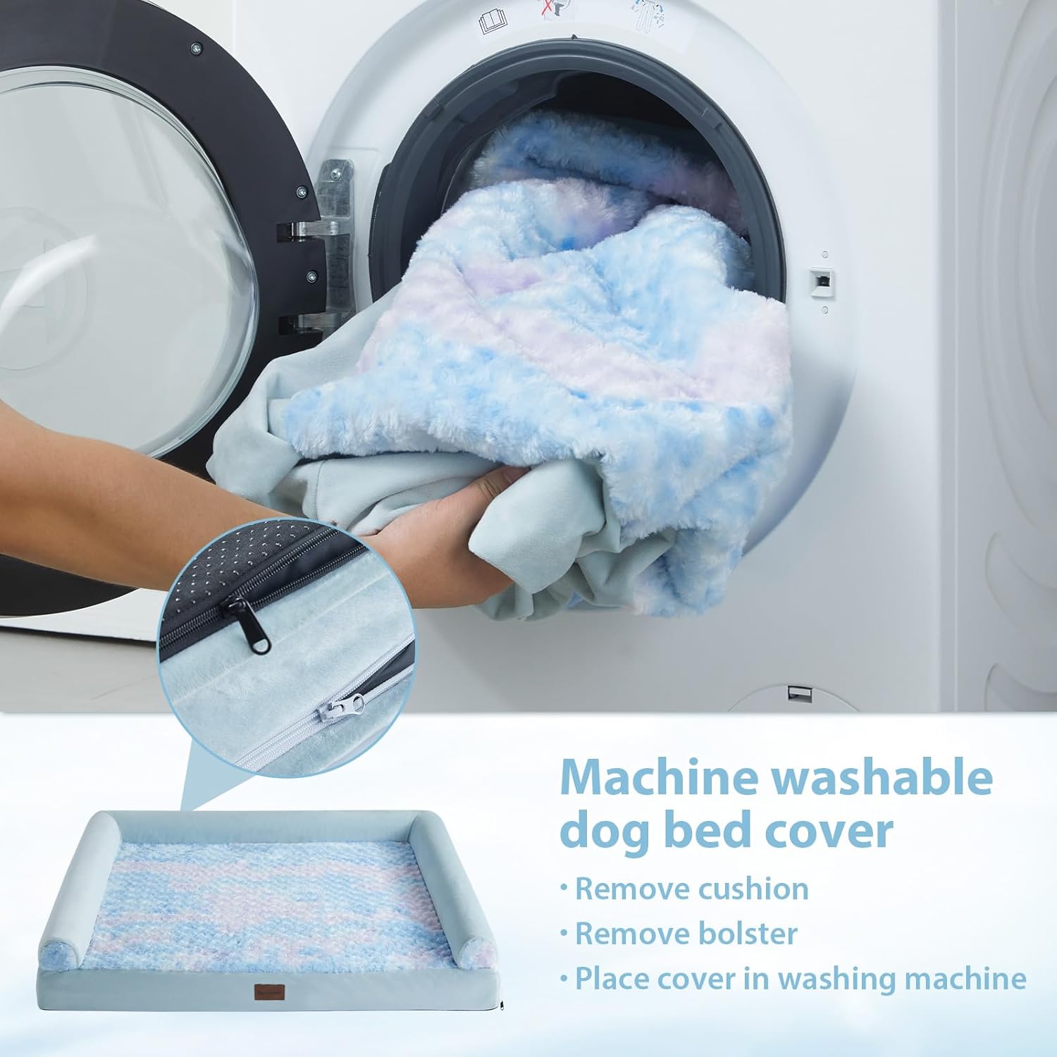 - WATERPROOF DOG BED & REMOVABLE DOG BED: The 3 side zippers on the dog bed cover make it easier to remove or put together for quick cleaning and easy care. The waterproof inner layer protects the egg foam from leaking urine and drool, allowing your puppy to use it with confidence at any time.