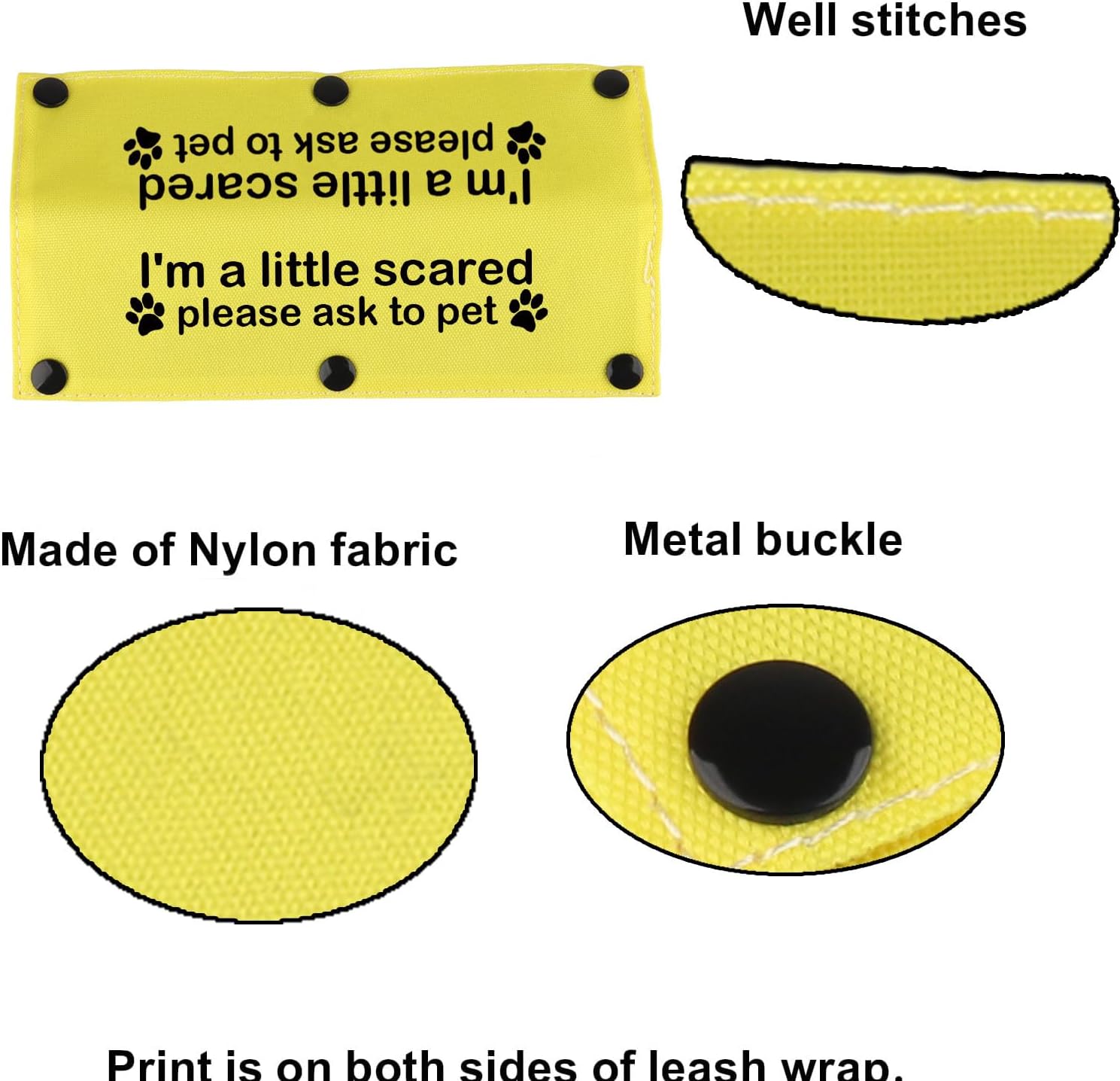 Funny Dog Leash Sleeve I'm a Little Scared Please Ask to pet Leash Wrap Alert Hanging ID Patch Tag Pet Birthday Gift (Little Scared-YE Sleeve)