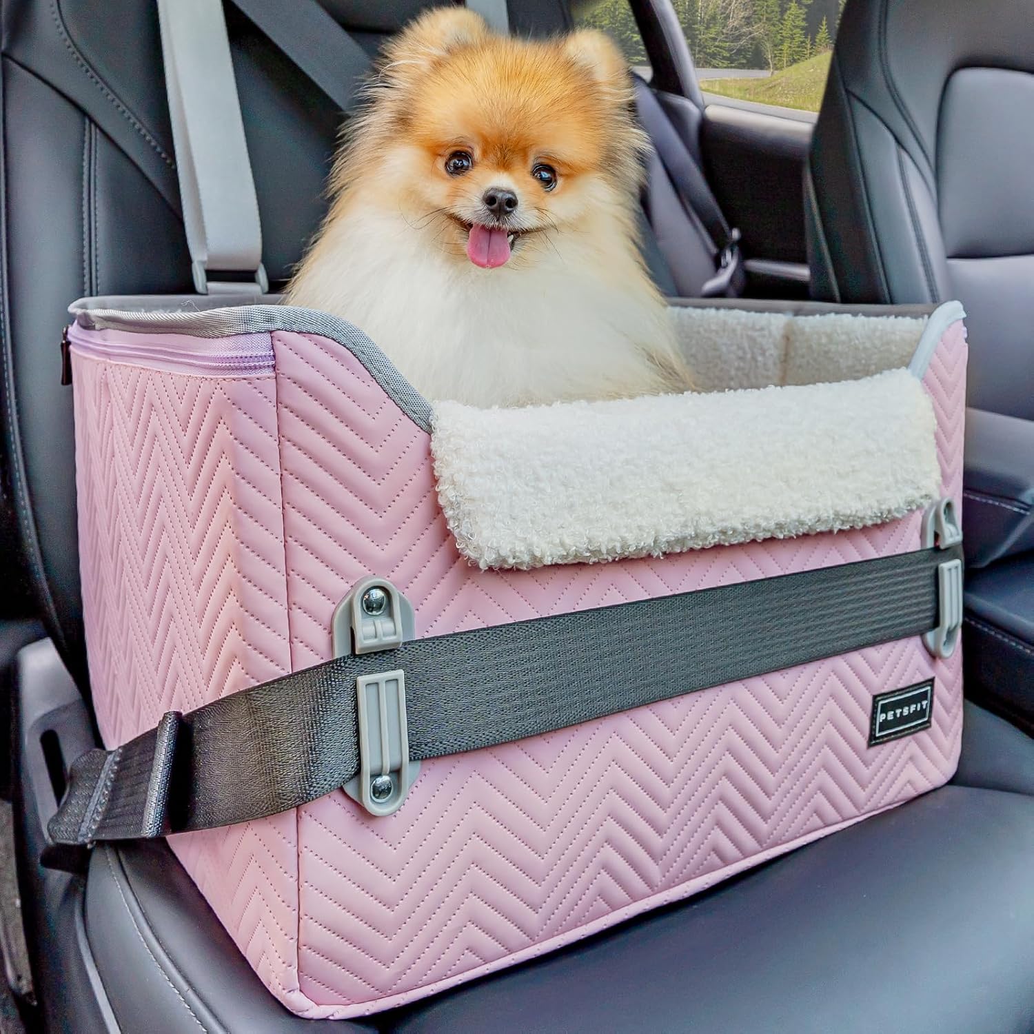 PETSFIT Dog Car Seats for Small Dogs, Portable Puppy Car Saet for Car with Clip-On Leash, Adjustable Straps Suitable for Small Pets Up to 25lbs (Light Pink)