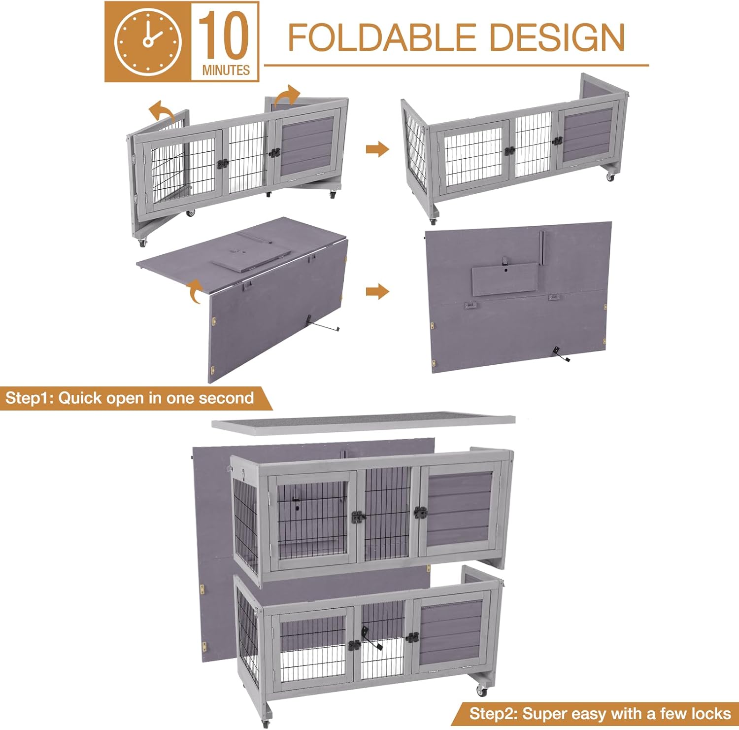 - Folding Rabbit Hutch: Most of the parts were pre-assembled and foldable, super easy to assemble by few steps