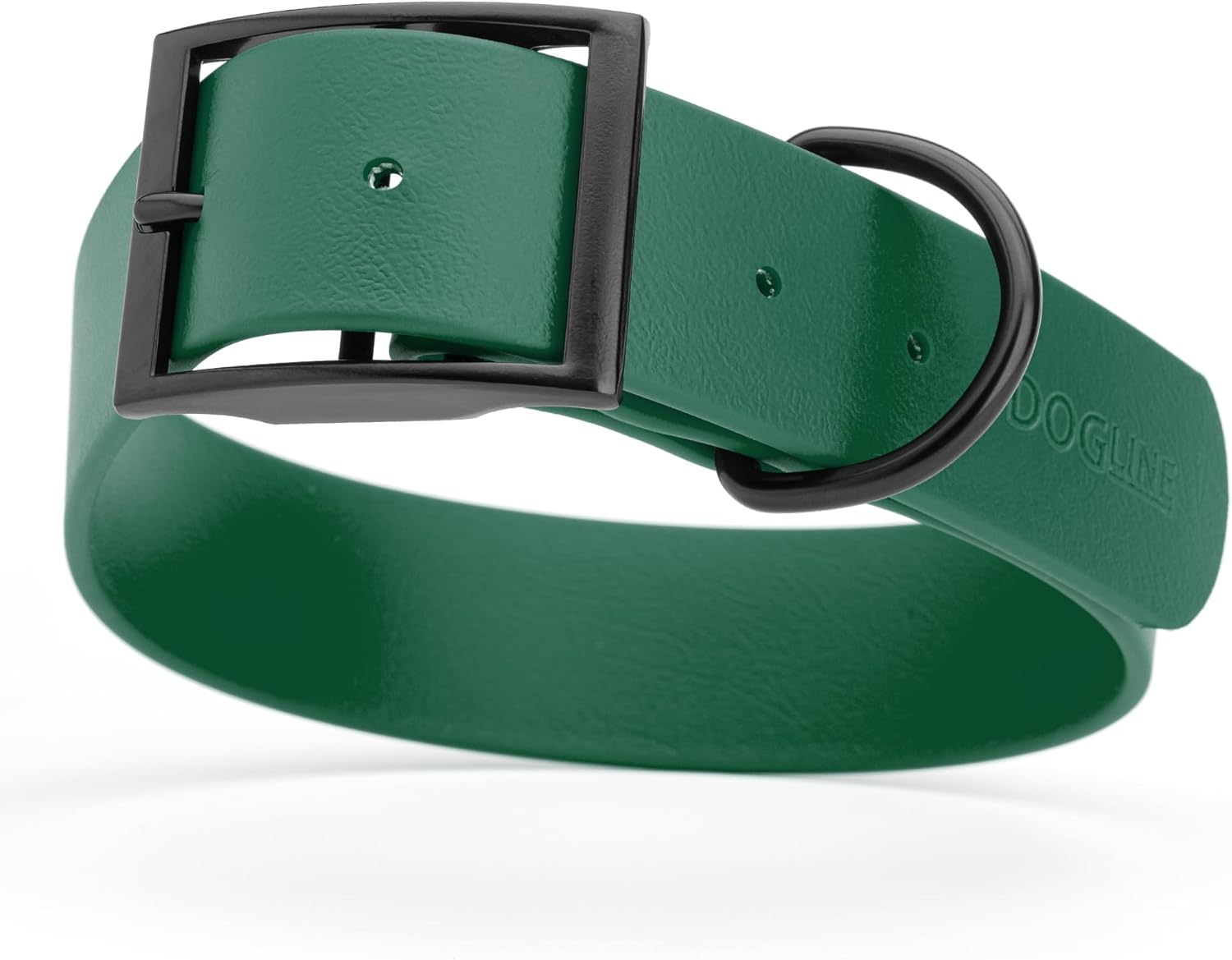 Dogline Biothane Waterproof Dog Collar Strong Coated Nylon Webbing with Black Hardware Odor- Proof for Easy Care Easy to Clean High Performance Fits Small Medium or Large Dogs, Hunter Green