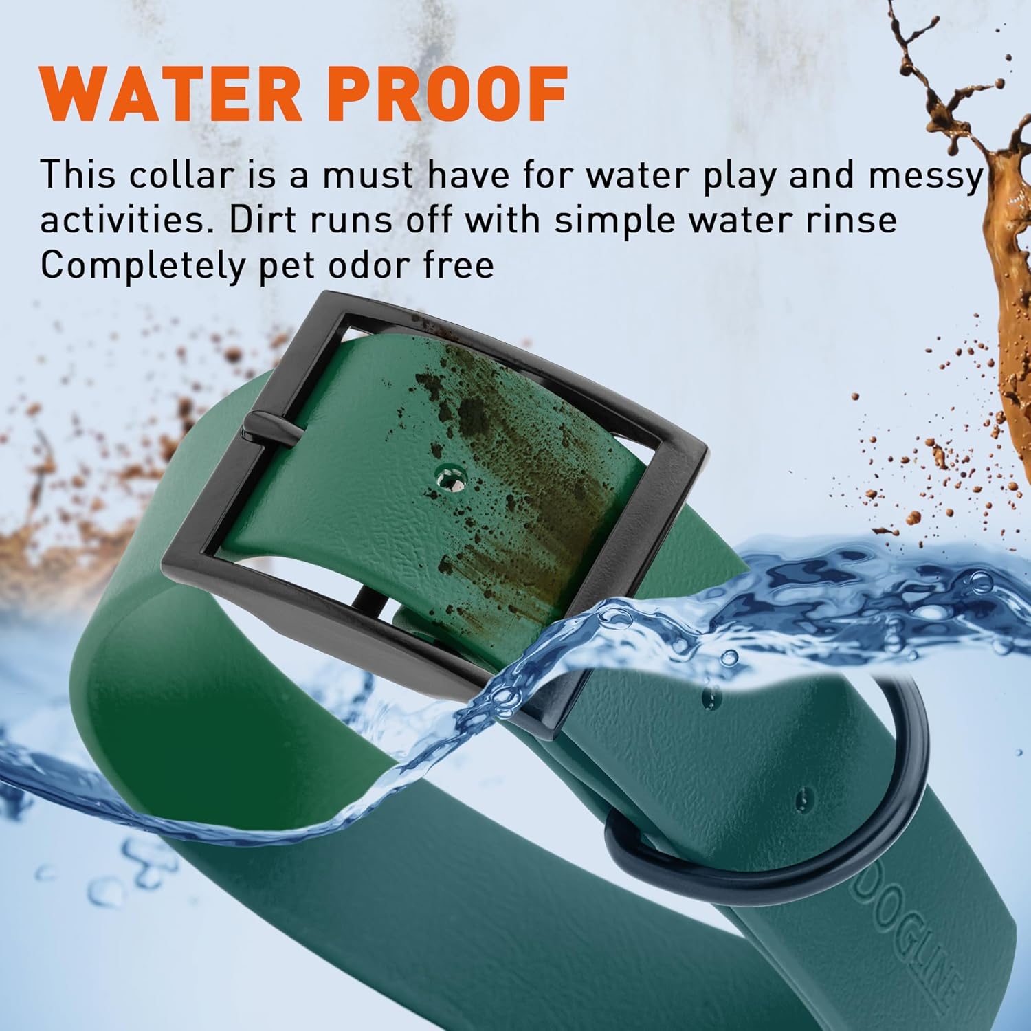 - Free Your Dog to romp in puddles and retrieve from lakes with the Dogline Biothane Waterproof Dog Collar. This water-repellent collar stays dry and odor-free, without shrinking or losing flexibility.