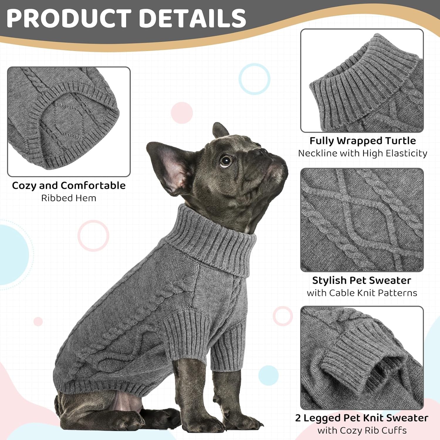 - THICK & WARM KNIT SWEATER: The dog's turtleneck pullover sweater is made of high density acrylic yarn that is comfortable, soft, warm and easy to care. The cable knit sweater is the cute winter clothes for your dog.