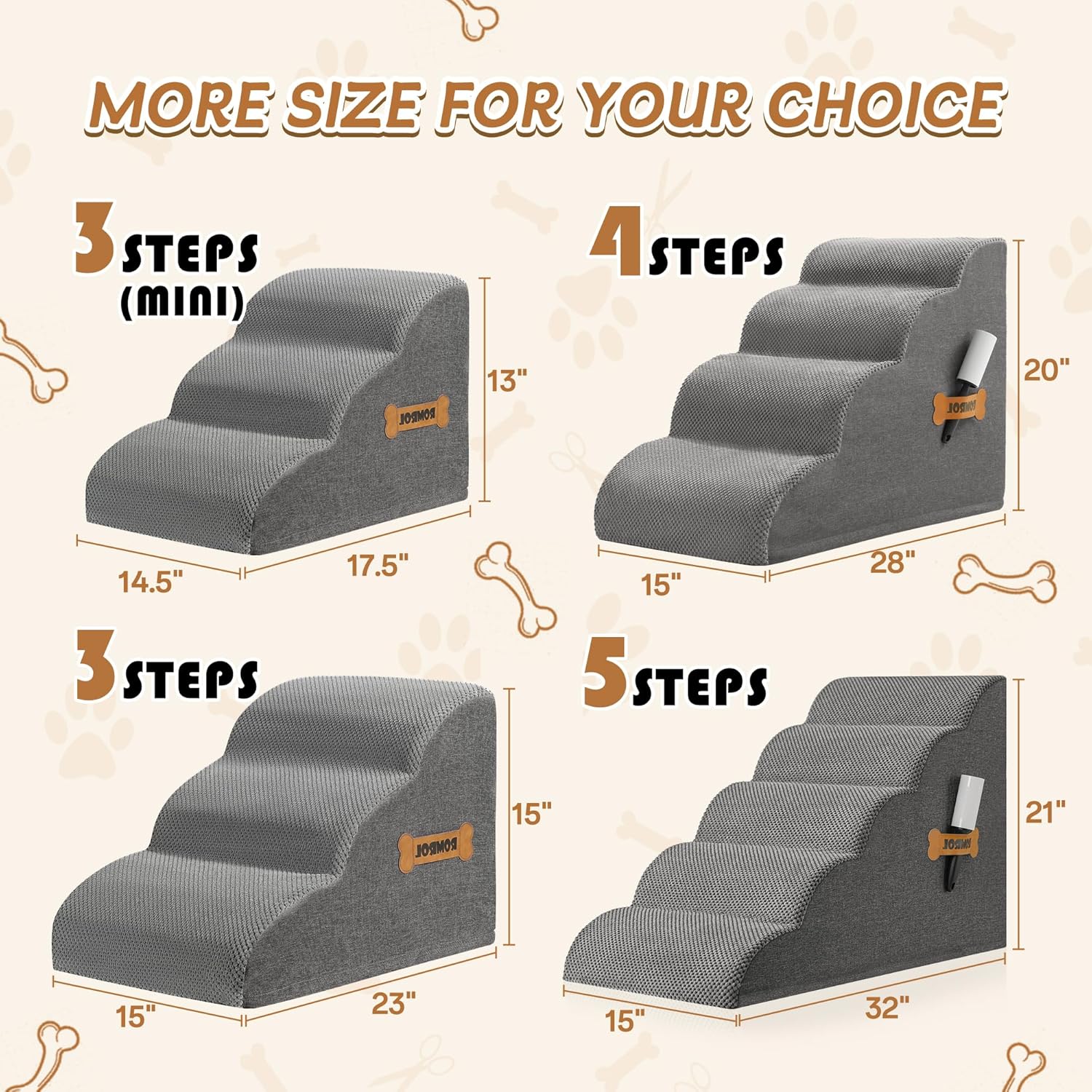 - Please note that due to trimming and vacuum compression, the sponge may take a minimum of 48 hours to fully rebound, and there may be variations in size. Our dog stairs come in a variety of heights, colors, foam densities, and shapes to suit your taste and your pet's needs. Choose the ideal combination for your space and your petโs comfort. suitable for small and medium dogs