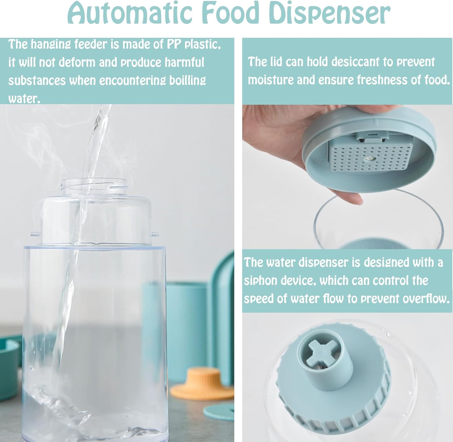 - 【Food Preservation Design】This guinea pig food water dispenser has a new food preservation design, within the lid we made a place can be use to hold the desiccant, which can keep the pet's food fresh and protect the pet's health. Detachable design, so you don't have to remove the whole unit for cleaning, easy to clean.