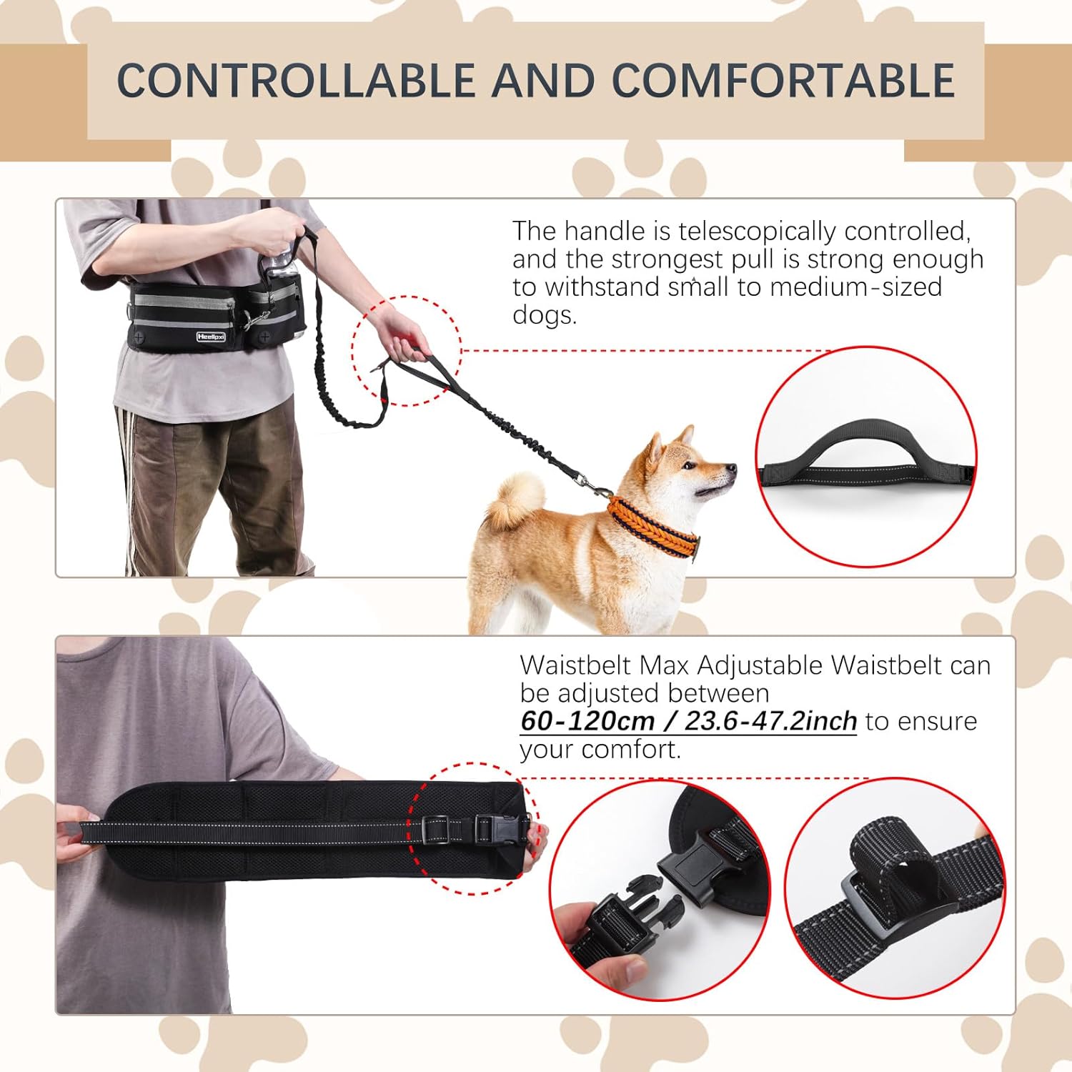 - Hands Free Design: Heellpxi Hands Free Dog Leash allows you to enjoy a hands-free walking, jogging, or running experience with your furry friend. With its adjustable waist pack and sturdy leash, you can have full control over your dog's movements while keeping your hands free for other activities.