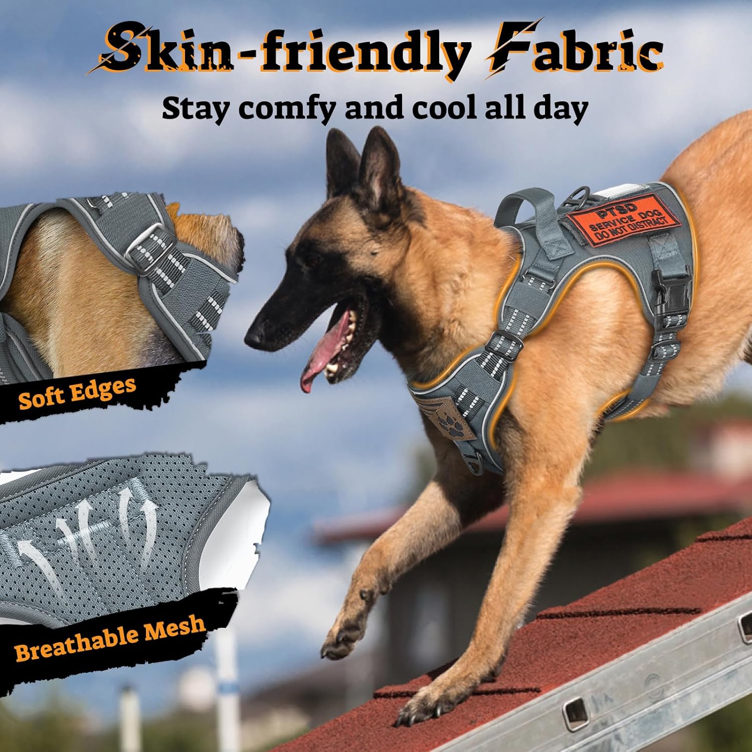 - Customizable Fit: The large dog harness has a chest girth of 22.0"-37.0" and a neck girth of 21.1"-30.3", with plenty of room for adjustment, making it suitable for breeds like Husky, Golden Retriever, German Shepherd, Bulldog, Rottie Puppy, Belgian Malinois, and more