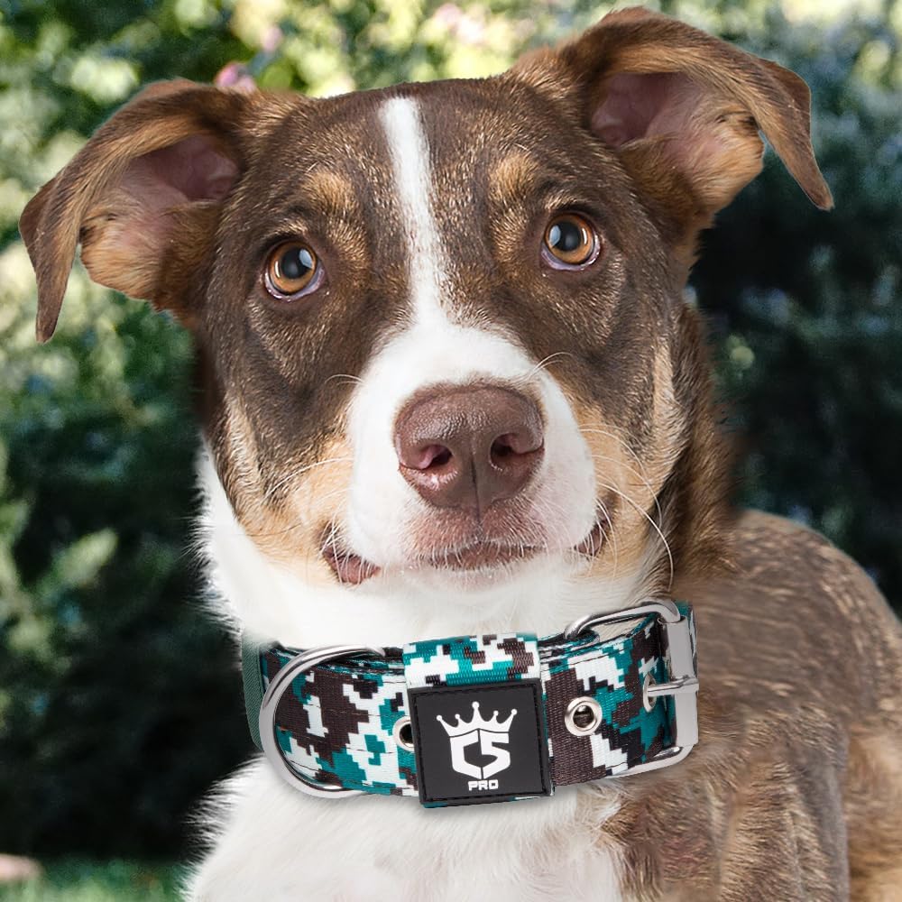 TSPRO Tactical Dog Collar 1.5 Inch Wide Thick Dog Collars with Heavy Duty Metal Buckle, Durable, Strong, Adjustable for Medium to Large Dogs (Camo Cyan M)