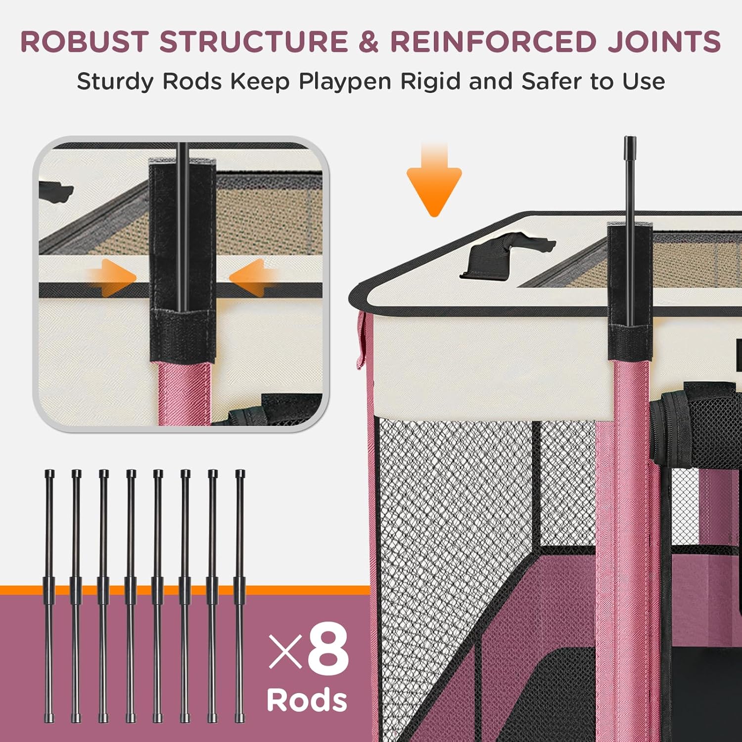 - Portable Design: Assembly can be completed in 3 minutes by unfolding the portable pet playpen and inserting the support rods. (You can check our video or user manual for specific installation and folding methods.)Portable dog cat playpen can be folded when not in use, suitable for indoor, outdoor, travel, camping, and more.