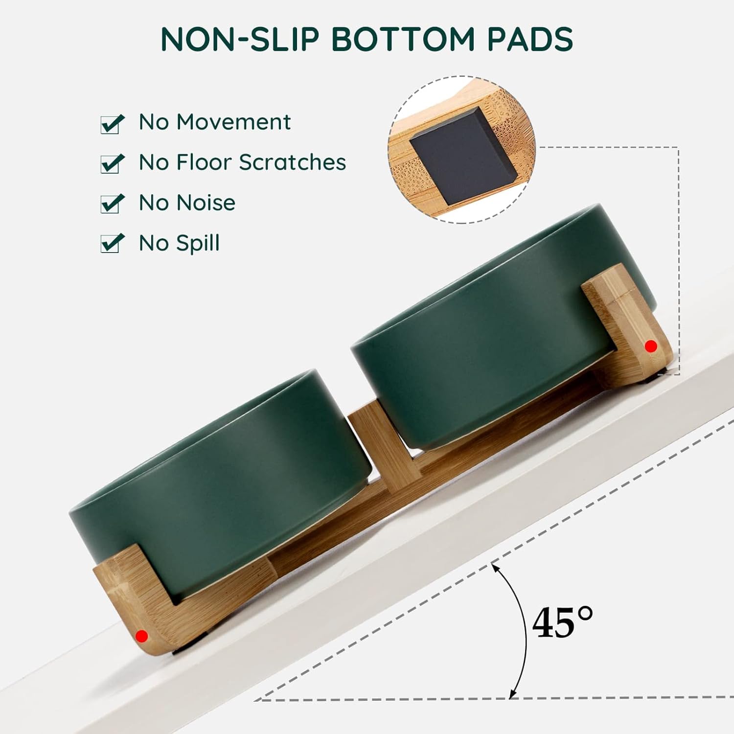- [Natural Wooden Stand]:Unique wooden stand can effectively prevent food from spilling and keep the floor clean and tidy. Non-Slip bowl base, making it easy to pick up and put down