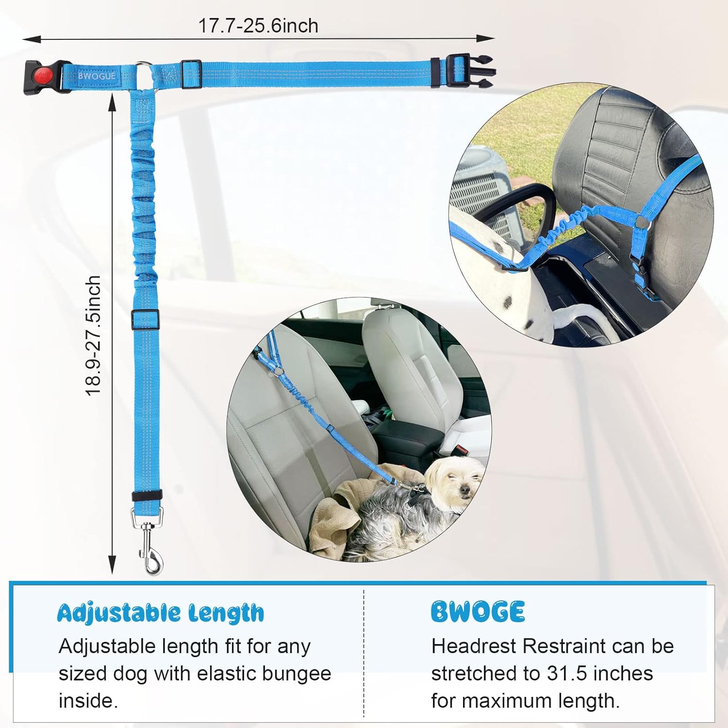 BWOGUE Pet Dog Cat Seat Belts, Car Headrest Restraint Adjustable Safety Leads Vehicle Seatbelt Harness (1 Pack)