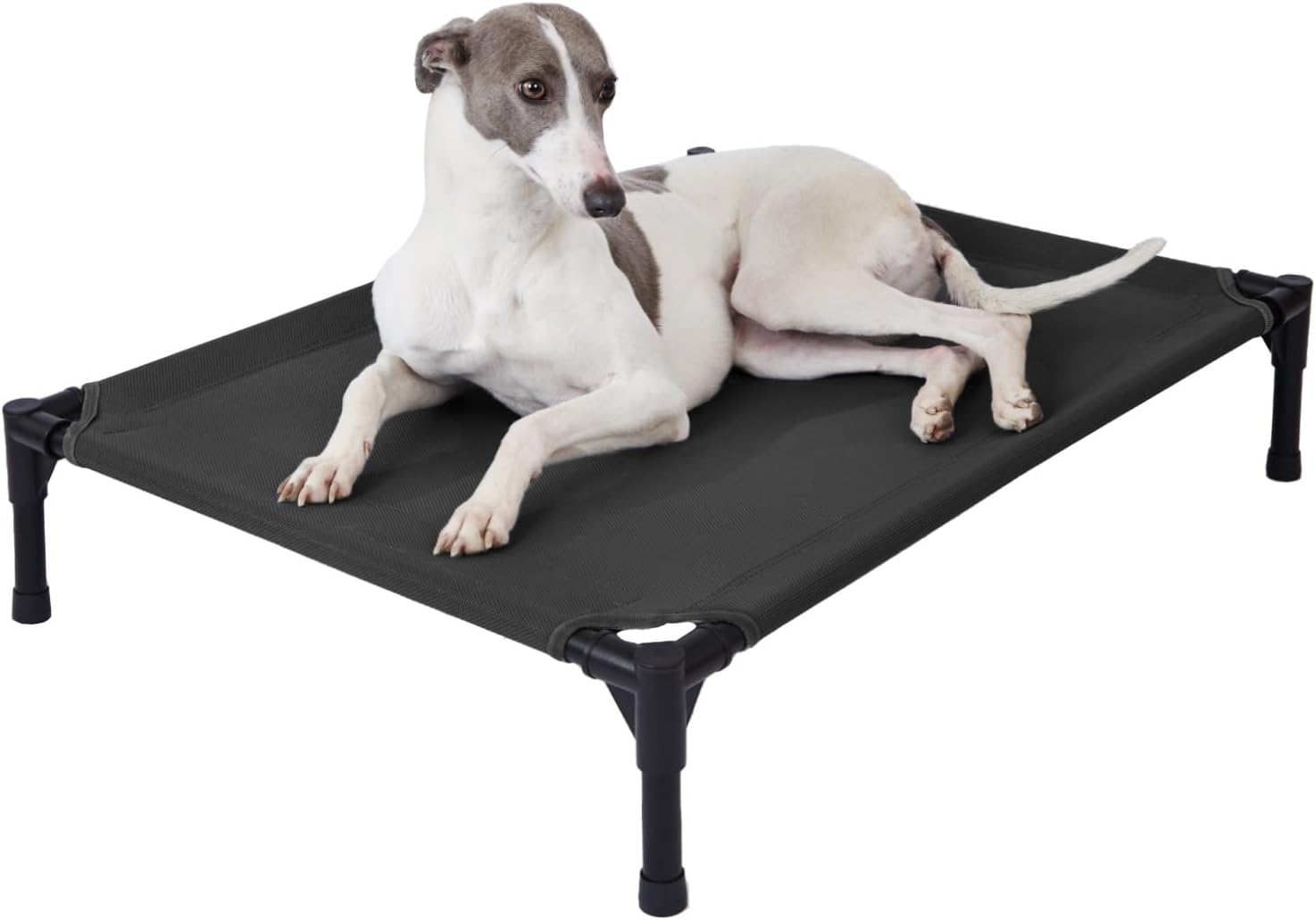 pettycare Elevated Outdoor Dog Bed - Dog Cots for Medium Pet, Heavy Duty Raised Cot Waterproof, Cooling Pets Bed with Washable Durable Teslin Mesh and Non Slip Feet, 32 Inches, Black
