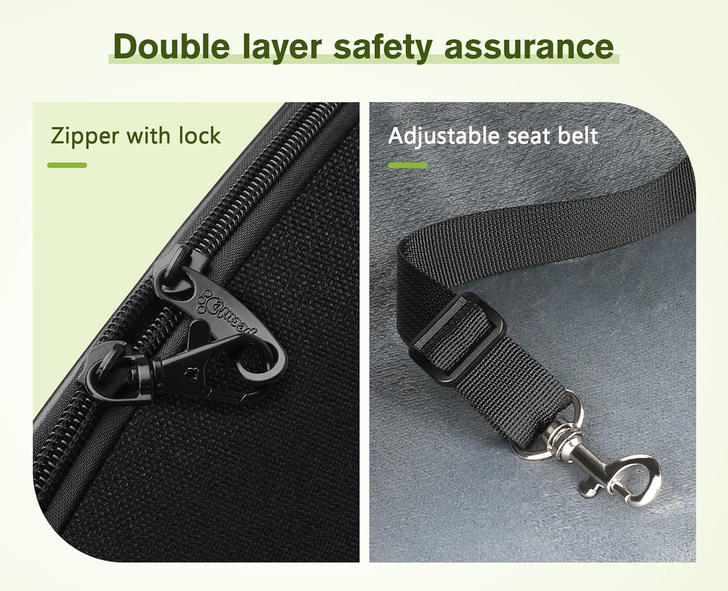 - γSAFETY & STORAGE γ: 1, Made of high-quality Oxford Cloth, waterproof, anti-scratch, and non-irritating, let your pet breathe freely and relax. 2, Adopts lock-type zipper design to prevent the zipper from being opened by pets. Built-in retractable hook safety rope to prevent pets from escaping. 3, The pockets on both sides can store food, water bottle, poop bags, and some necessary accessories.